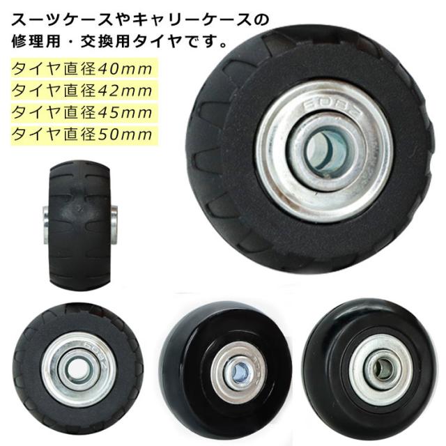スーツケースタイヤ 交換用キット キャスター 自分で修理 DIY 4個セット 車輪のみ 交換用 タイヤ交換 ゴムタイヤ ゴム車輪 ベアリング式 取り替え スーツケース 台車 キャリーケース タイヤ修理キット キャスター 交換 40mm 42mm 45mm 50mm 送料無料