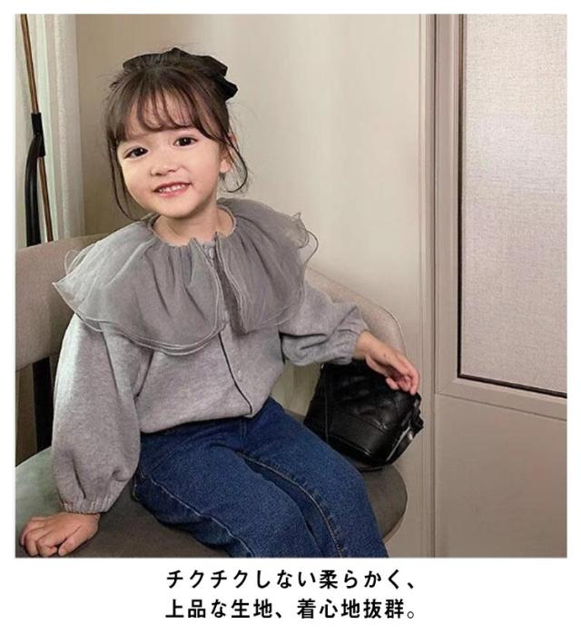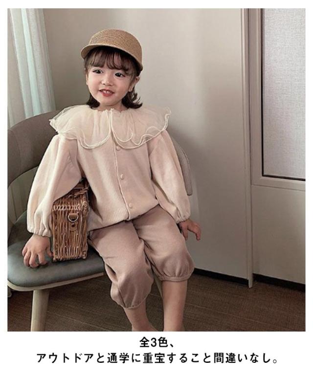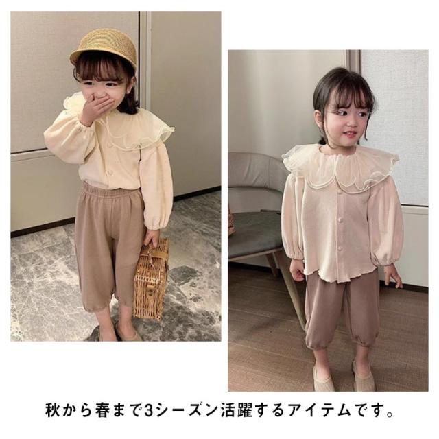 ビッグカラー 綿 カーディガン キッズ 子ども服 長袖 女の子 羽織り チュール襟 重ね着 90 100 110 120 130 140 ライトアウター 羽織り パーカー 前開き ガールズ 韓国子供服 春秋 幼稚園