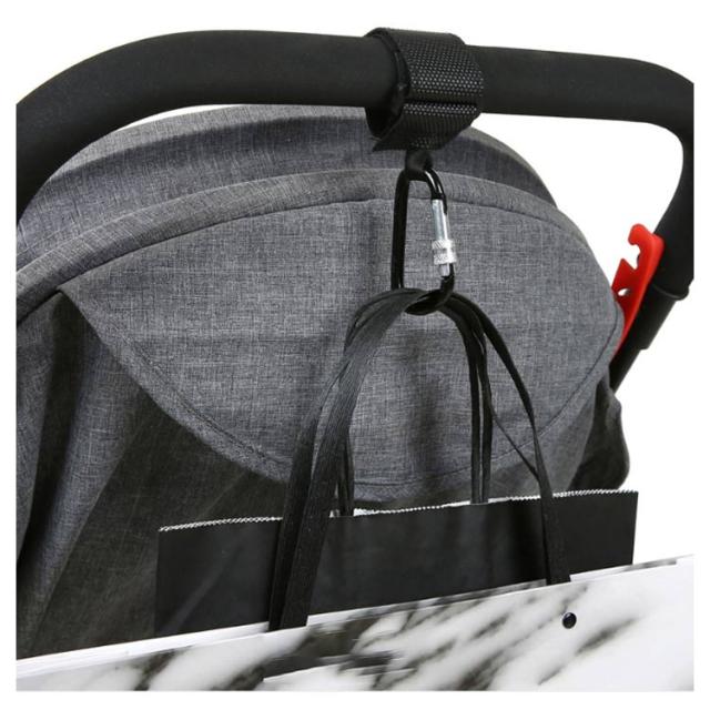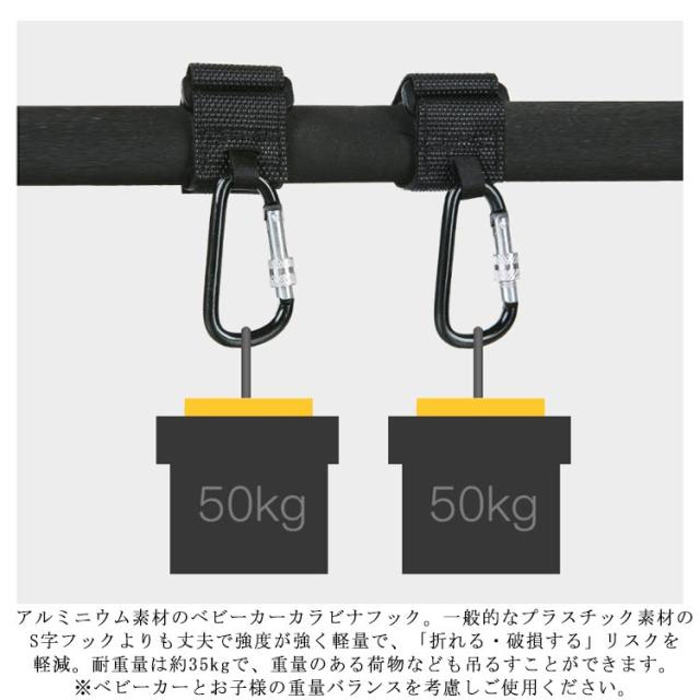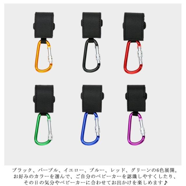 (2個セット)ベビーカー フック カラビナ クリップ マルチフック 荷物フック ストラップ 盗難防止付き 荷物かけ 頑丈 カラビナ 金属 強力 ミニ 丈夫 ブラック 滑り止め バギー 自転車 買い物カートにも 黒 お出かけ 赤ちゃん