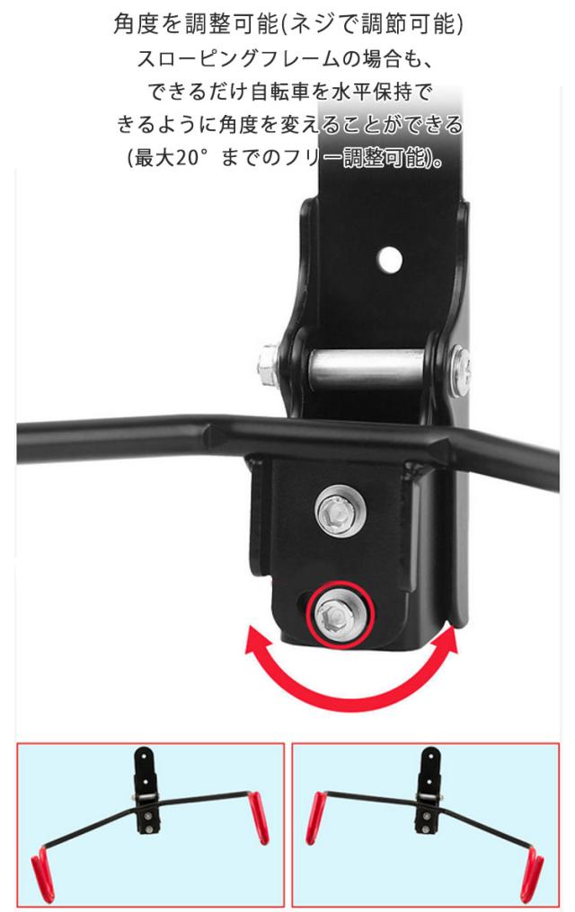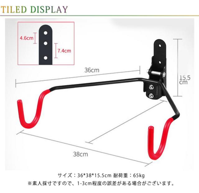 | お気に入りの自転車をかっこ良くディスプレイ! 自転車壁掛けフックが登場。 重さは約65kgまでの自転車を支えることが出来ますので、ショップでも自宅でも大活躍します。 折りたたみ式なので、省スペース! スローピングフレームの場合も、できるだけ自転車を水平保持できるように角度を変えることができる(最大20°までのフリー調整可能)。 オフロード自転車、ロード自転車、マウンテンバイクなどにも適用可能です。 スローピングフレームの場合も、できるだけ自転車を水平保持できるように角度を変えることができる(最大20°までのフリー調整可能)。 | |