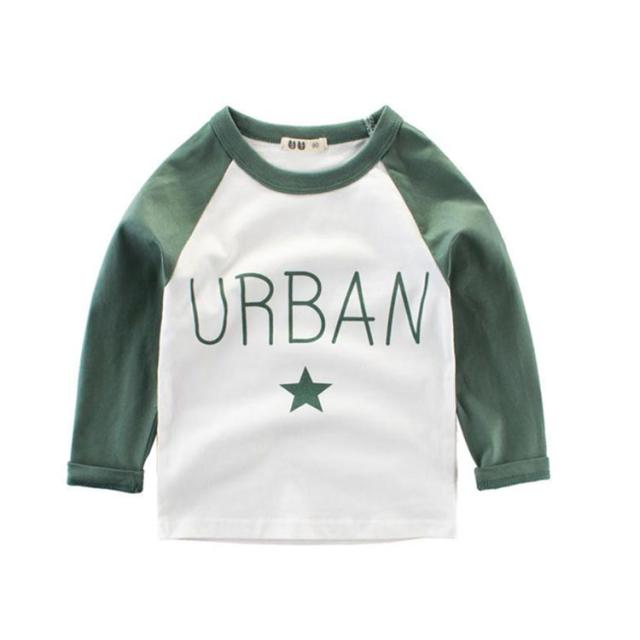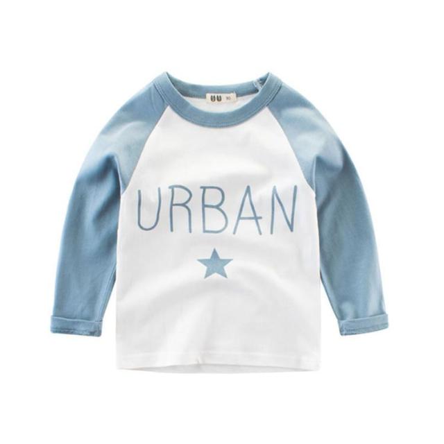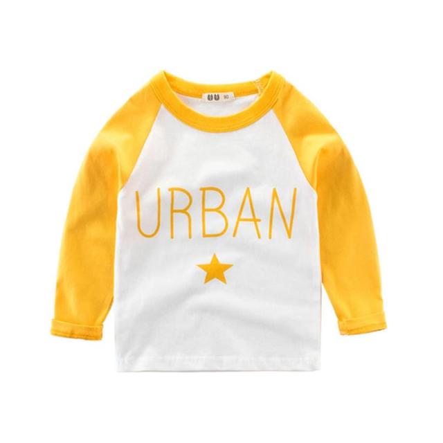 Tシャツ カットソー 長袖 ラウンドネック ラグラン袖 子供用 キッズ トップス 丸首 丸襟 プリント 星 スター 英字 アルファベット バイカラー ツートンカラー カジュアル 可愛い かわいい 男の子 女の子 男児 女児 子供服 子ども服 送料無料