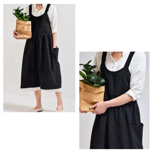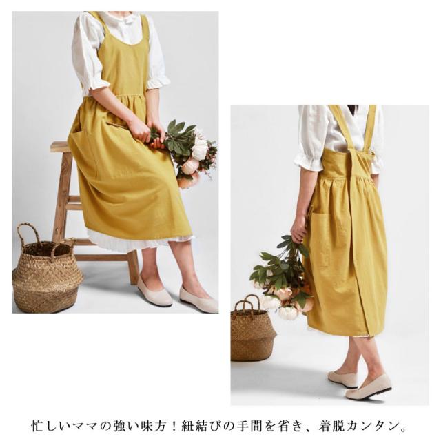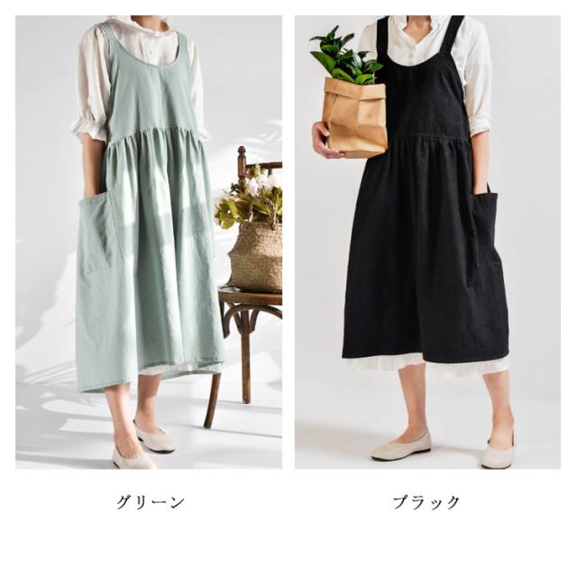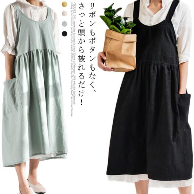 送料無料 エプロン 綿麻 リネンエプロン レディース ワンピース風 ロング 無地 北欧 カフエ 花屋 リネンコットン 母の日 クロス 保育士 スーパー用 キッチン 家事