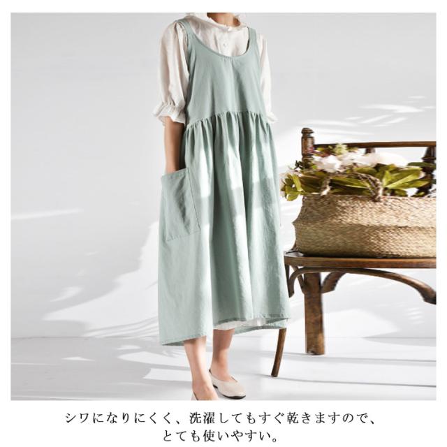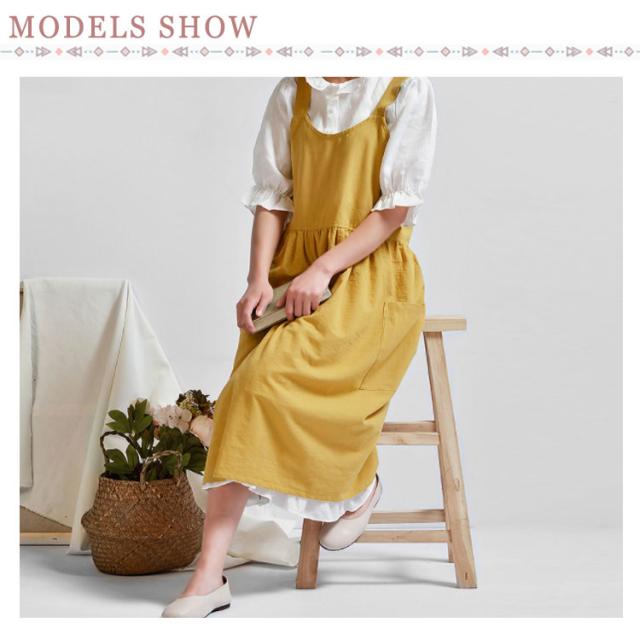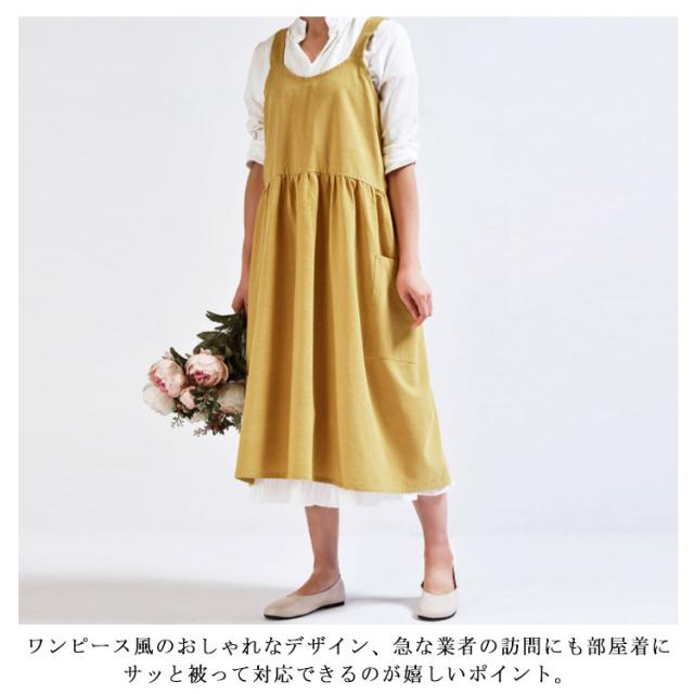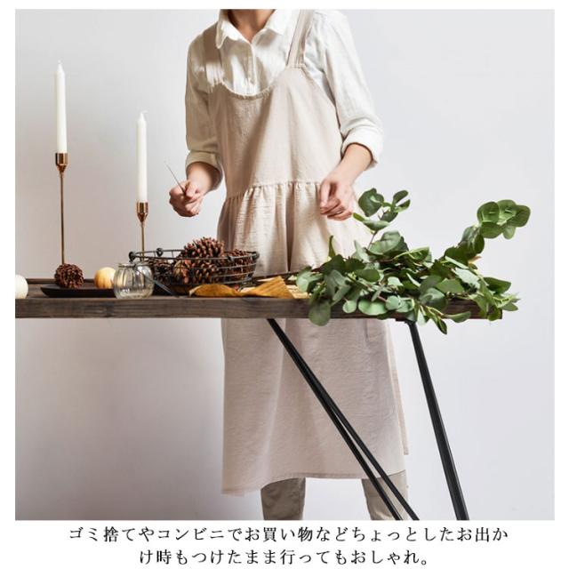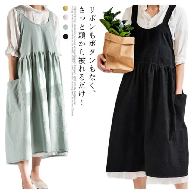 | リボンもボタンもなく、さっと頭から被れるだけ! 忙しいママの強い味方!紐結びの手間を省き、着脱カンタン。 ワンピース風のおしゃれなデザイン、急な業者の訪問にも部屋着にサッと被って対応できるのが嬉しいポイント。 両サイドに大きめポケット付ききで、スマホや小道具など入れるのに便利、デザイン性と実用性を兼ね備えた可愛いエプロン。 シワになりにくく、洗濯してもすぐ乾きますので、とても使いやすい。 ナチュラルな風合いのリネン素材、ふんわりと柔らかい肌触りがステキ。 ゴミ捨てやコンビニでお買い物などちょっとしたお出かけ時もつけたまま行ってもおしゃれ。 家事、ガーデニング、陶芸などカフェ、保育園、花屋など業務用としても、様々な用途でご使用いただけます。 | |