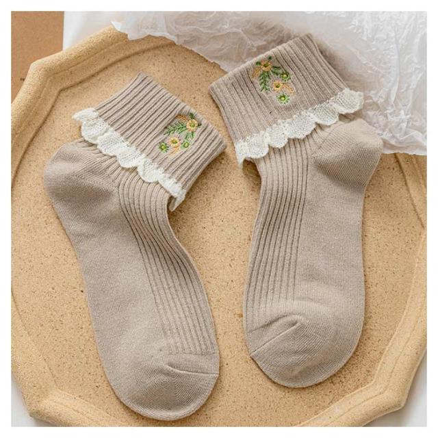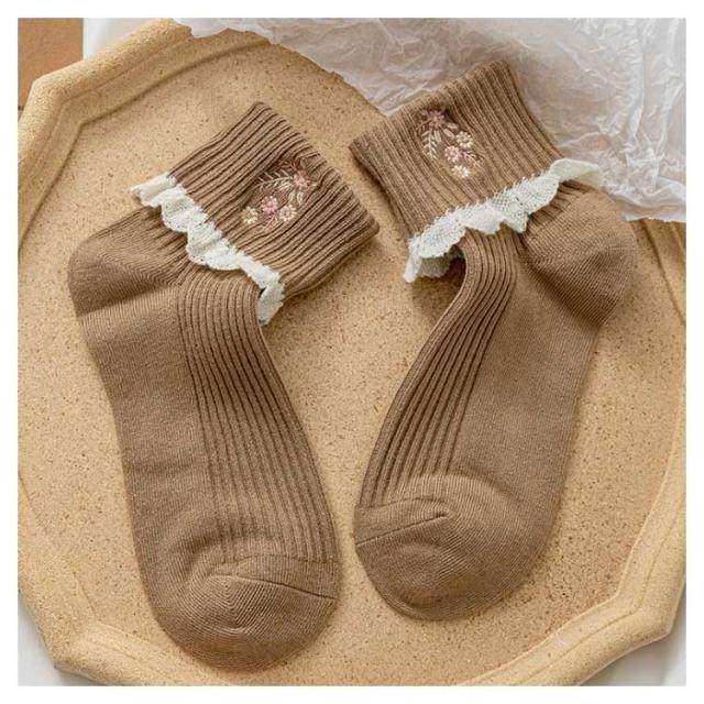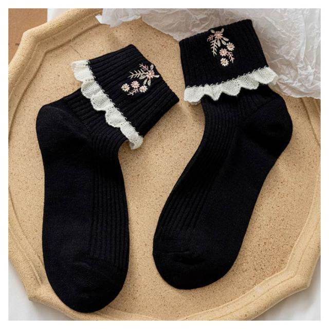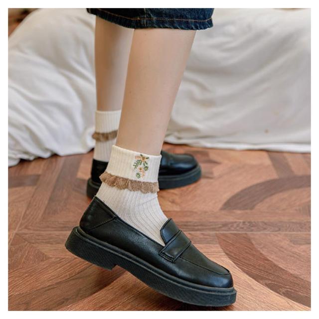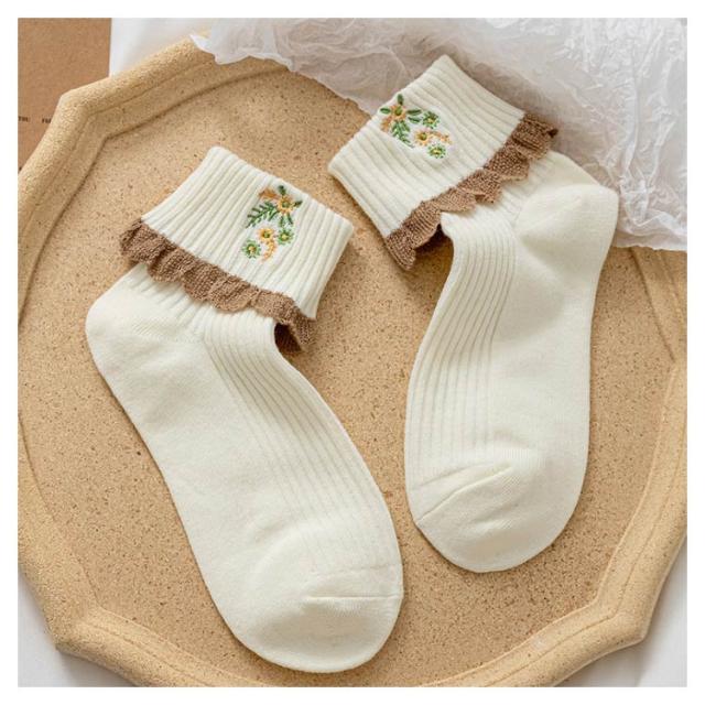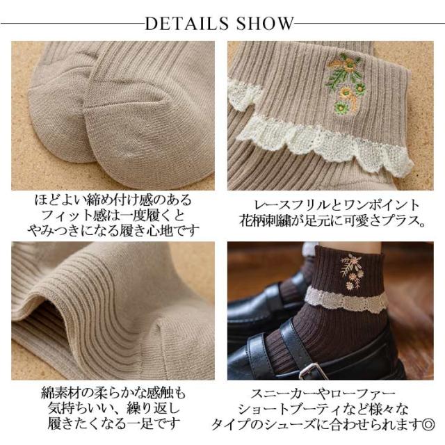 ソックス 2足セット レースフリル ガーリー かわいい ショート靴下 ショートソックス レディース フリルソックス コットン レース 花柄刺繍 靴下 クール丈 伸縮性 厚手 ニットソックス