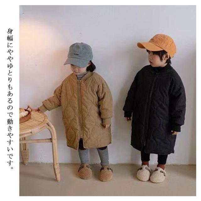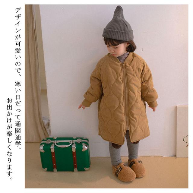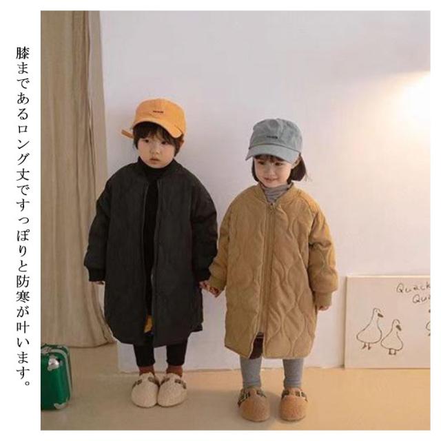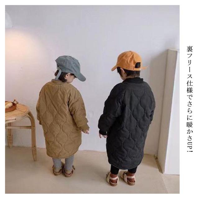 キルティングジャケット キッズ 中綿コート ノーカラー 中綿ジャケット 子供服 キルティングコート 男の子 女の子 裏起毛 アウター ロングコート 裏フリース 厚手 暖かい キッズ服 子ども服 防寒 冬服 秋服
