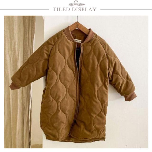 | 暖かく、軽い着心地のキルティングジャケットです。 中綿入りで、軽量ながらもしっかりと体を暖めてくれます。 身幅にややゆとりもあるので動きやすいです。 裏フリース仕様でさらに暖かさUP! 膝まであるロング丈ですっぽりと防寒が叶います。 一枚でも十分あったか、さらに着もめるからどんな寒い日も安心。 デザインが可愛いので、寒い日だって通園通学、お出かけが楽しくなります。 | |