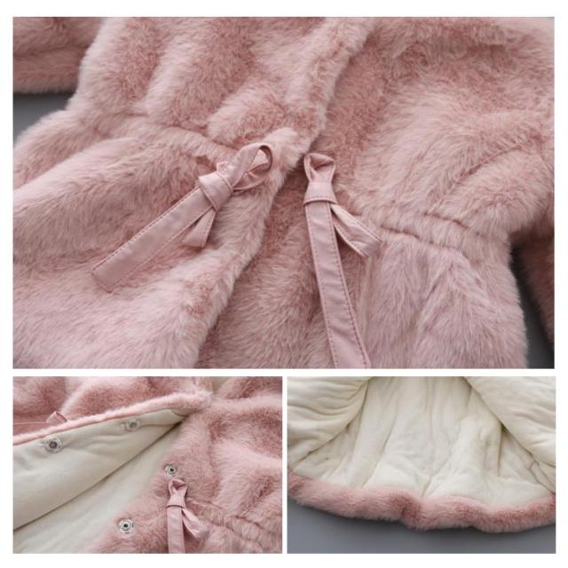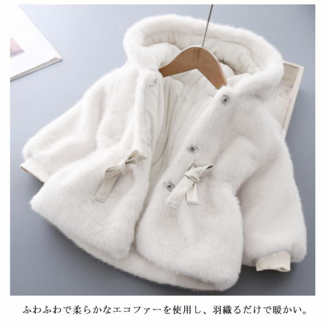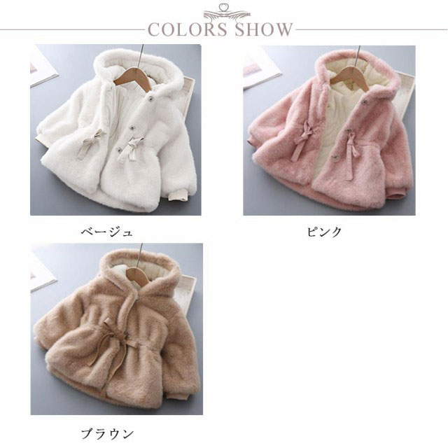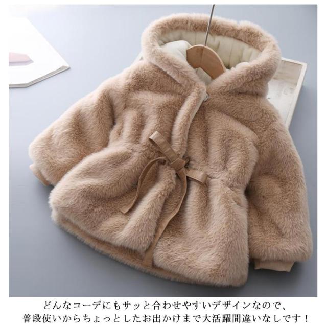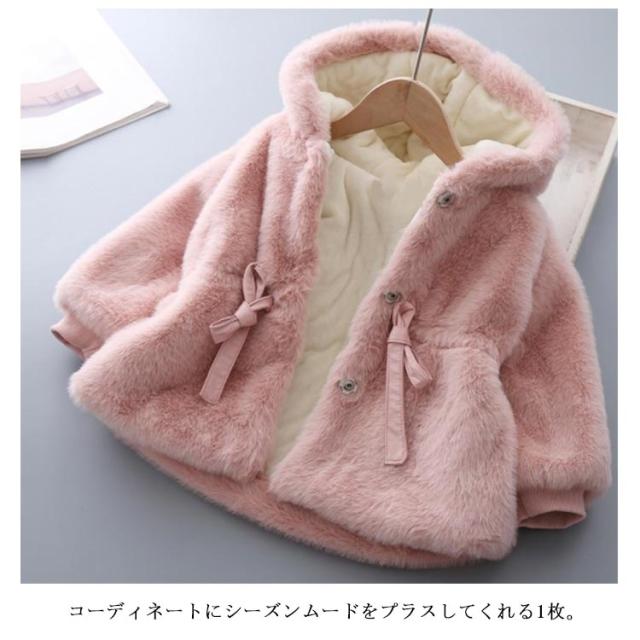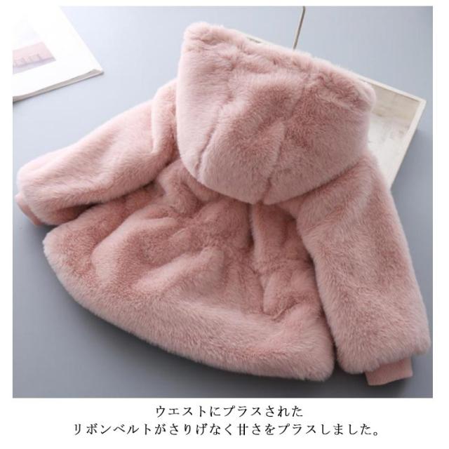 ファーコート 女の子 エコファー アウター 長袖 厚手 トップス キッズ ファー ジャケット フード付き 子供服 キッズ服 冬服 秋服 ふわふわ もこもこ 暖かい 防寒 コート 子ども用 ベビー服 ウエストリボン ベルト