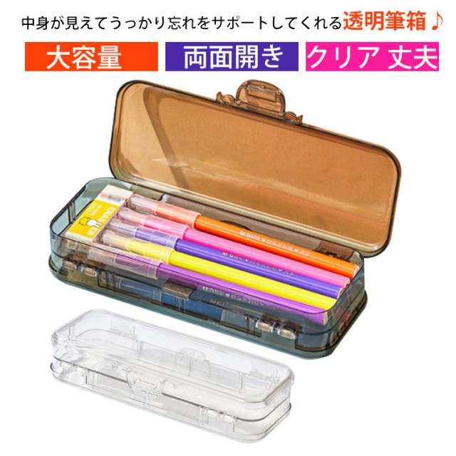 透明 筆箱 2個セット 小学生 両面開き ペンケース ロック付き クリア 丈夫 大容量 両面 女の子 男の子 筆入れ 無地 おしゃれ 箱型 入学祝い 卒園祝い 子供 大容量 ペン入れ 通園 通学 筆記用具 文房具 プレゼント 贈り物 お祝い ギフト
