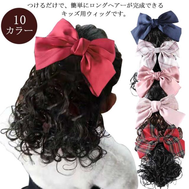 子供用 ヘアピン ウィッグ付き ポニーテール ヘアアクセサリー 送料無料 まとめ髪 ヘアアレンジ つけ毛 ロングウィッグ エクステウィッグ リボン付き 簡単 髪飾り ガールズロープウィッグ 入園 発表会 イベント