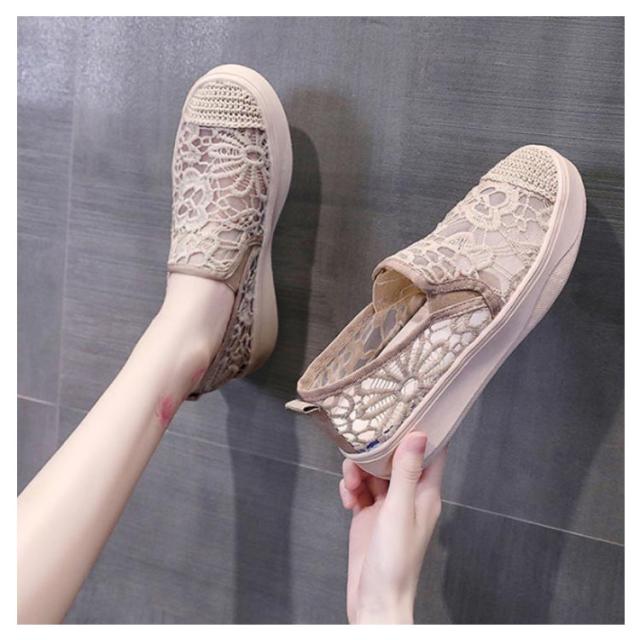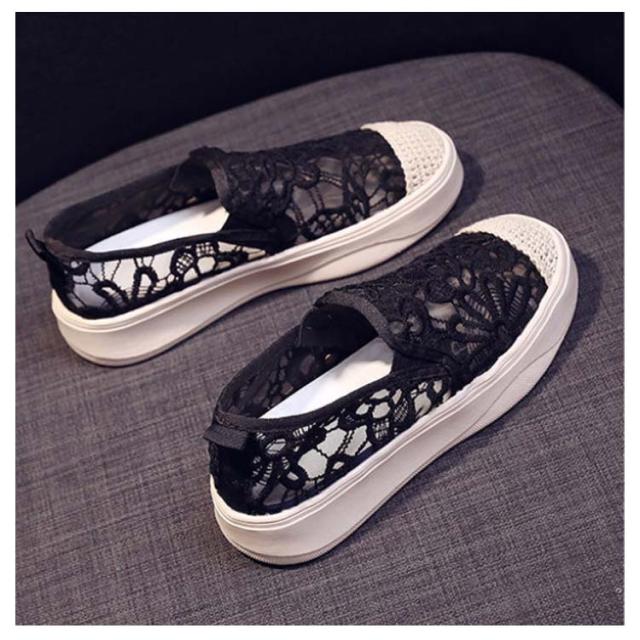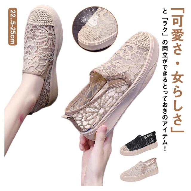 スリッポン スニーカー シューズ ぺたんこ レース レディース 可愛い スリッポン レーススリッポン おしゃれ きれいめ 大人 カジュアル ベージュ ブラック 春 夏 秋