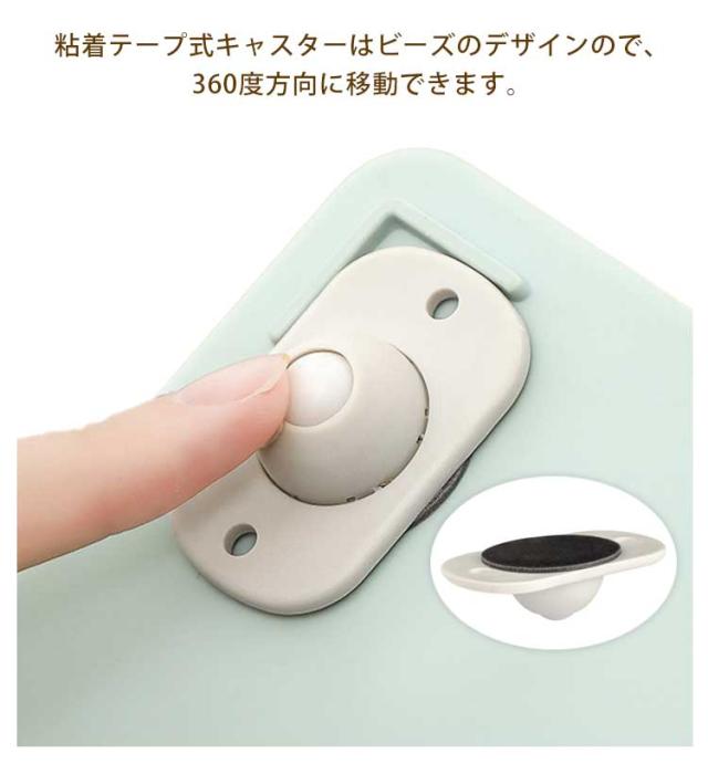 | 粘着テープ式キャスターはビーズのデザインので、360度方向に移動できます。 ビーズがプラスチックとステンレス材質ので、プラスチックボールは、耐久性ステンレスビーズと比べて、ノイズなしスムーズに移動できます。 家具や電器、ゴミ箱などを一気にキャスター付き物に変身! 粘着テープ式で取り付けが簡単。 掃除や何が探したい時、収納ボックスの移動を便利になる。シンプルなデザインですが、実用性に優れ、使い勝手も抜群です。 ゴミ箱、衣装ケース、カラーボックス、小型ヒーターなど利用できます。キャスターを貼り付けるだけの作業で今まで苦労した移動の手間を省けます。 | |