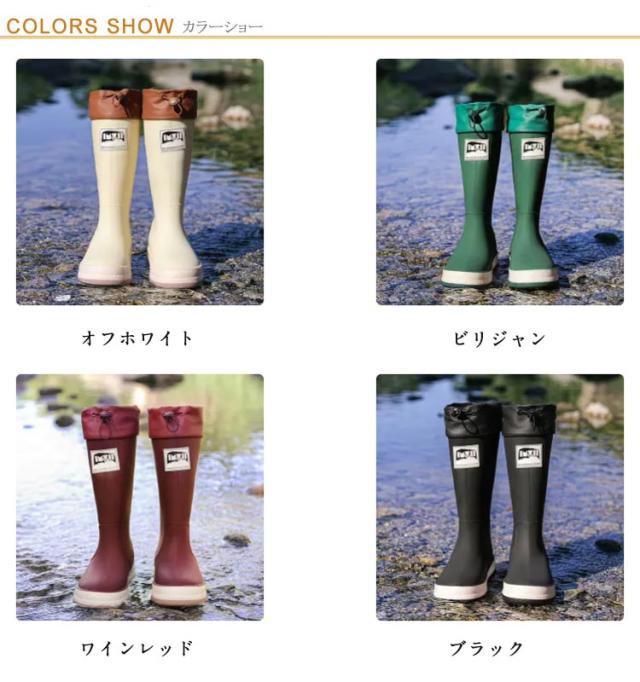 | 男女兼用レインブーツです。 雨の日はもちろん、キャンプ、ガーデニング、農作業、キャンプ等で大活躍すること間違いなし! 近頃はアウトドアや野外フェスで人気があり、定番マストアイテムとなっています! どんなシーンでも大活躍間違いなしです。 | |