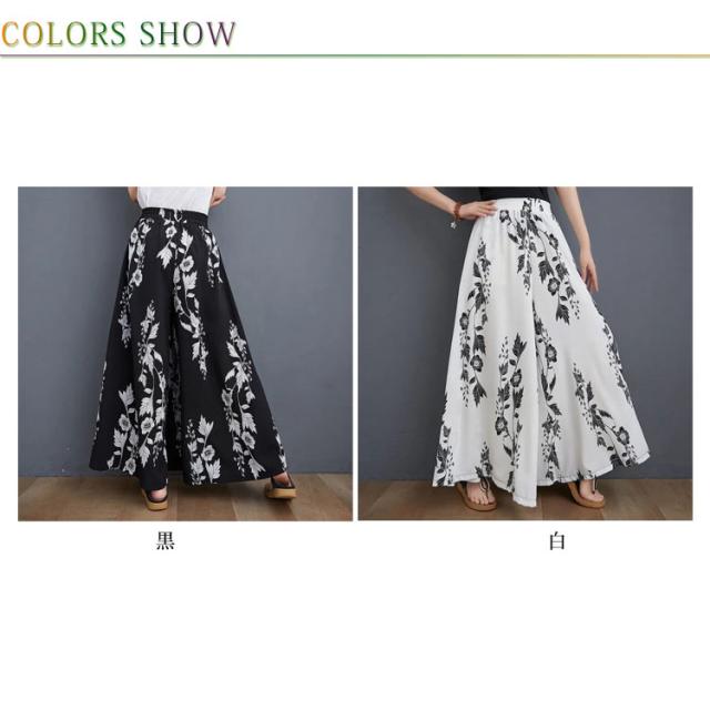フレアパンツ 大きいサイズ レディース ボトムス パンツ 花柄 ワイドパンツ ロングパンツ フレアパンツ スカーチョ ルーム 夏新作 夏服 春服 着痩せ 体型カバー 着回し S M L XL 2XL
