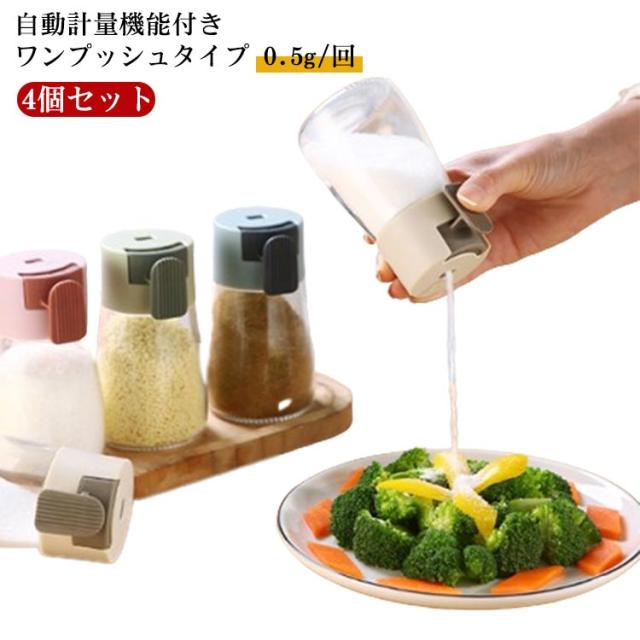 4個セット 使いやすい密閉ワンプッシュ 調味料入れ 調味料ポット 180ml ソルトコントロール 片手 自動計量機能付き 減塩 使いやすい 砂糖 塩入れ 調味料ケース 保存容器 容器 密閉保存容器 密閉ポット 収納 父の日ギフト 母の日 プレゼント 新生活