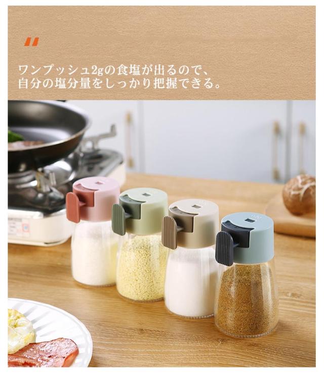 | 自動計量機能付き ワンプッシュタイプ 0.5g/回 使いやすい密閉できワンプッシュ出す調味料入れ ワンプッシュ2gの食塩が出るので、自分の塩分量をしっかり把握できる ワンプッシュで定量の調味料を出せますので、作業がとってもスムーズ 高級感と透明感を追求した素材感、気配りのあるディテールが人気 体に優しいガラス・PP素材を採用するので、安心してご使用 開口部が広く、調味料の補充がラクラク♪ しっかり閉まって中の調味料が固まりにくい | |