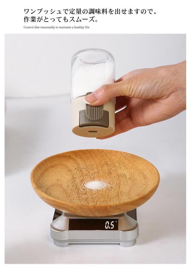 | 自動計量機能付き ワンプッシュタイプ 0.5g/回 使いやすい密閉できワンプッシュ出す調味料入れ ワンプッシュ2gの食塩が出るので、自分の塩分量をしっかり把握できる ワンプッシュで定量の調味料を出せますので、作業がとってもスムーズ 高級感と透明感を追求した素材感、気配りのあるディテールが人気 体に優しいガラス・PP素材を採用するので、安心してご使用 開口部が広く、調味料の補充がラクラク♪ しっかり閉まって中の調味料が固まりにくい | |