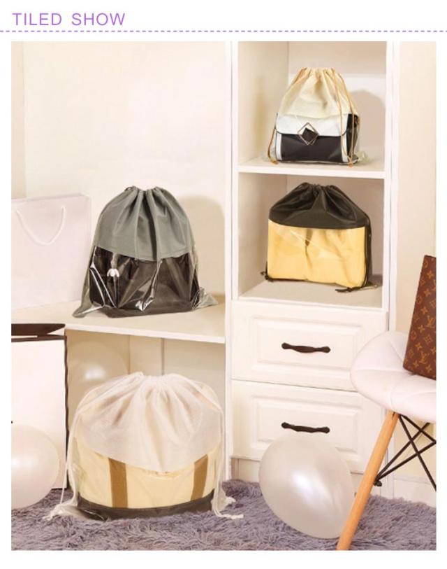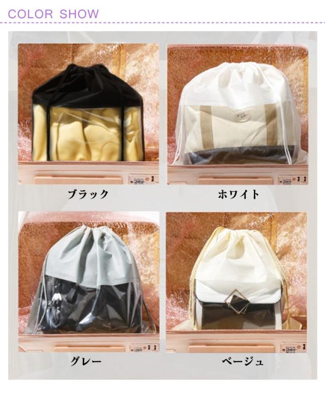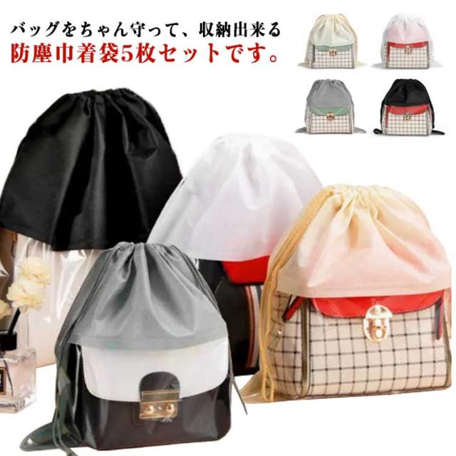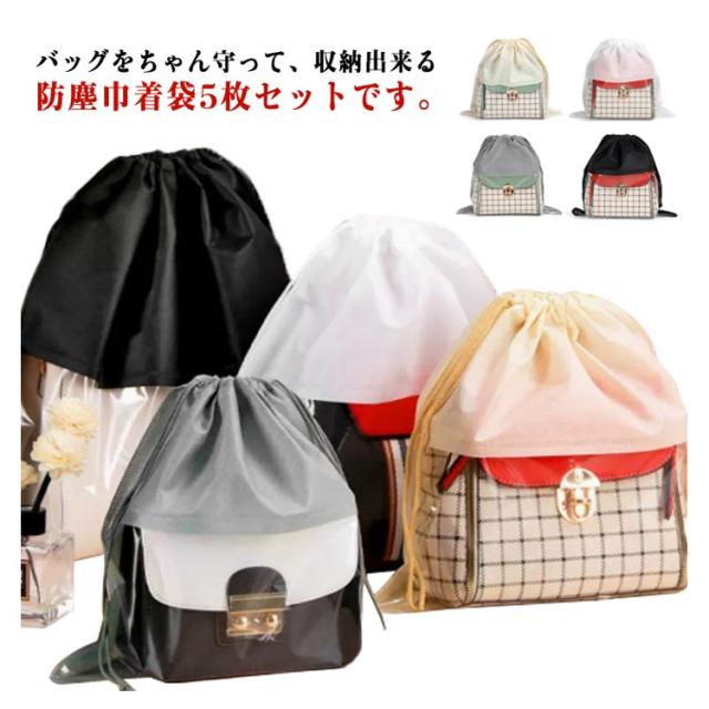 5枚セット バッグ収納 袋 巾着袋 防湿 防塵カバー バッグ収納袋 収納バッグ バッグ保護 不織布 見やすい 折りたたみ ポーチ お片づけ 整理 巾着 カバン 鞄 保管 バッグ保管 鞄保管用 ホコリよけ 防カビ