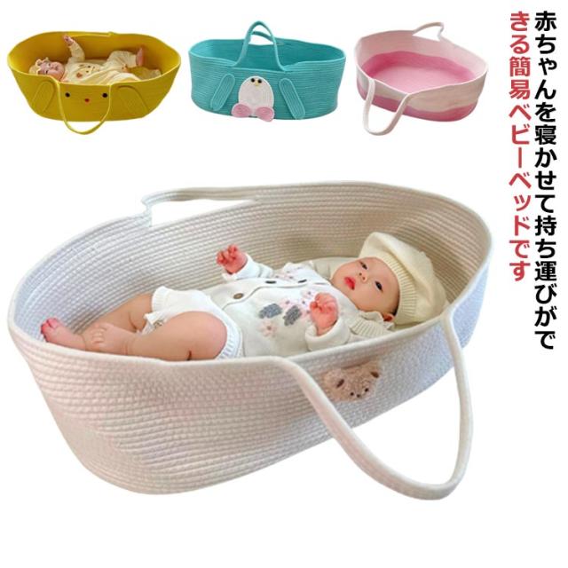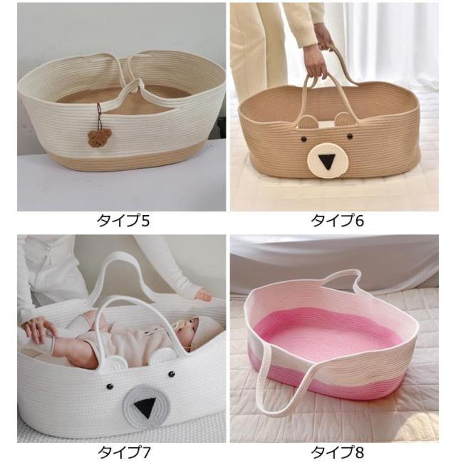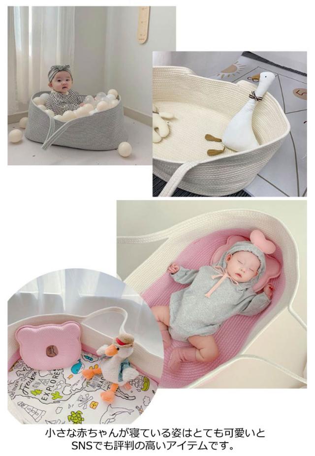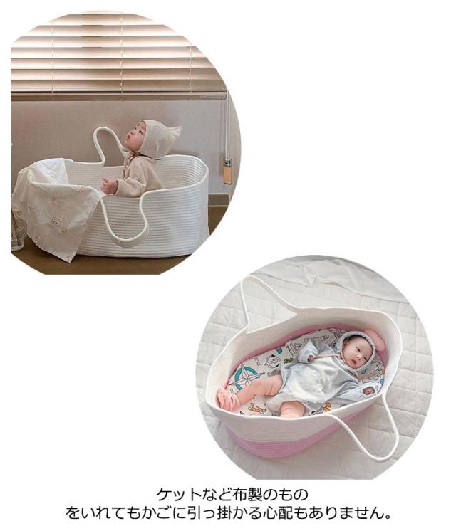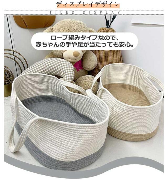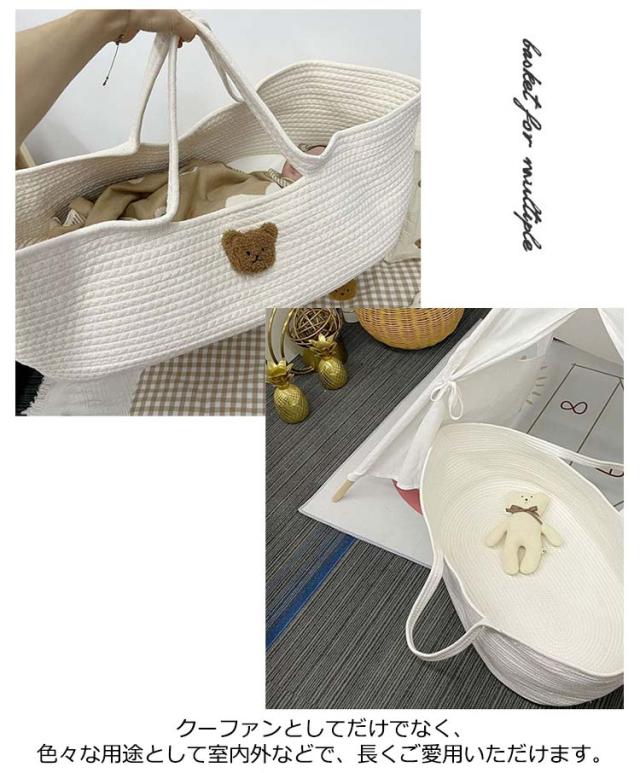 クーファン ロープ編み クーハン ベビーキャリー かご おもちゃ入れ 外出先 ベビーベッド 移動用 インス映え 北欧風 短期旅行 赤ちゃん 退院 重くない 軽量 手提げ 携帯便利