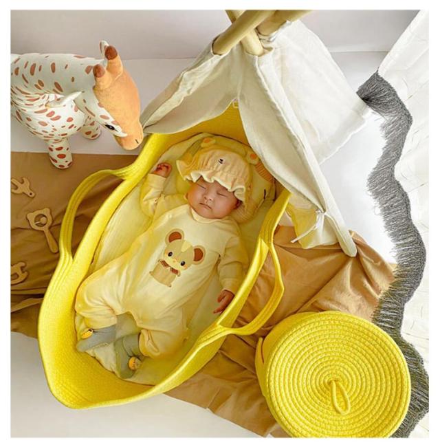 | 赤ちゃんを寝かせて持ち運びができる簡易ベビーベッドです ロープ編みタイプなので、赤ちゃんの手や足が当たっても安心。 ケットなど布製のものをいれてもかごに引っ掛かる心配もありません。 コンパクトで省スペースで設置できるので、自宅や外出先のどんな場所でも使うことができます。 クーファンとしてだけでなく、色々な用途として室内外などで、長くご愛用いただけます。 小さな赤ちゃんが寝ている姿はとても可愛いとSNSでも評判の高いアイテムです。 | |