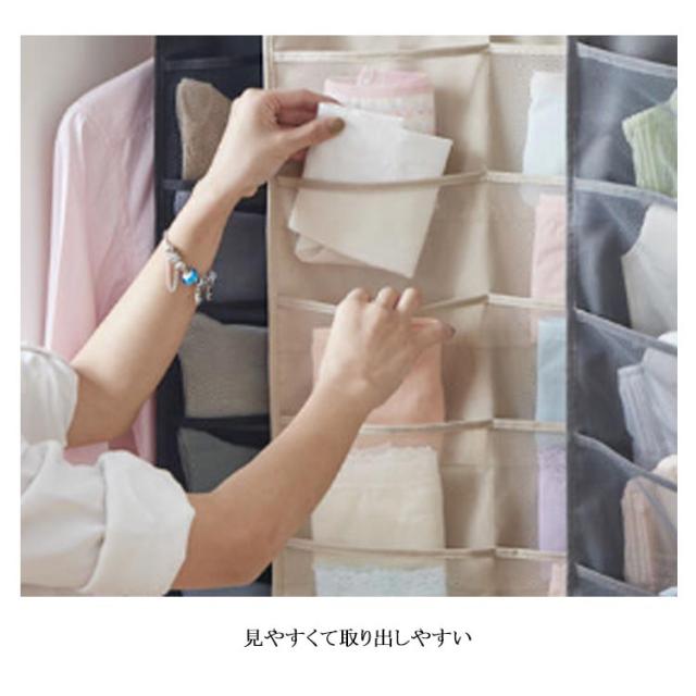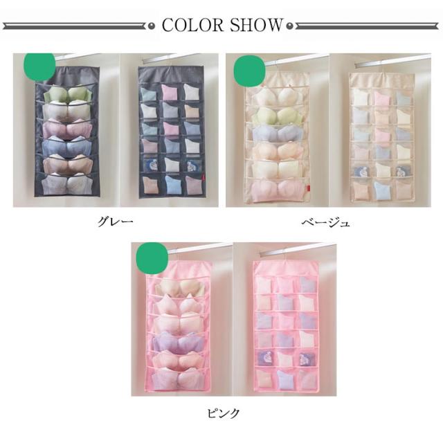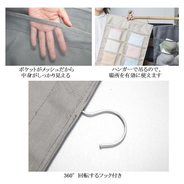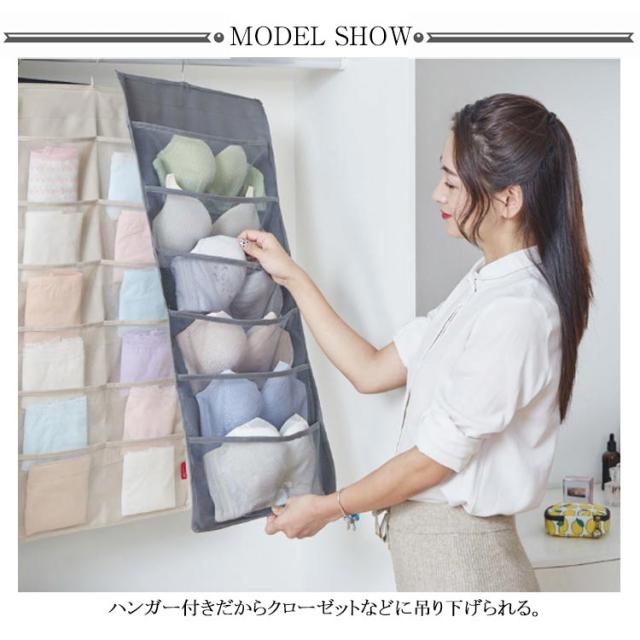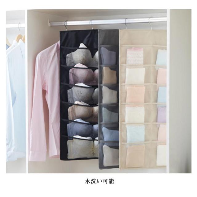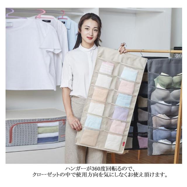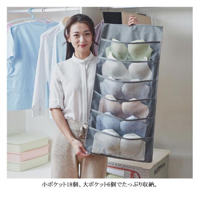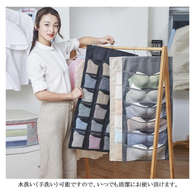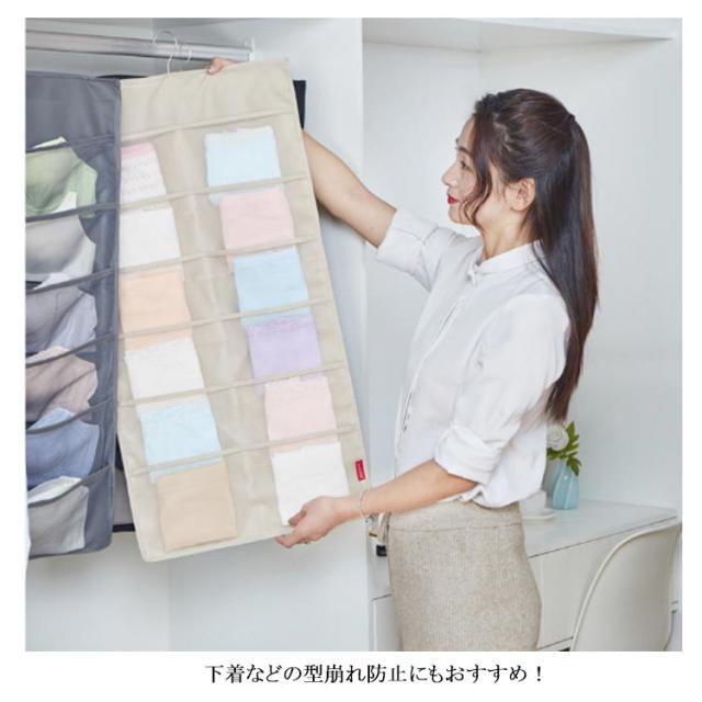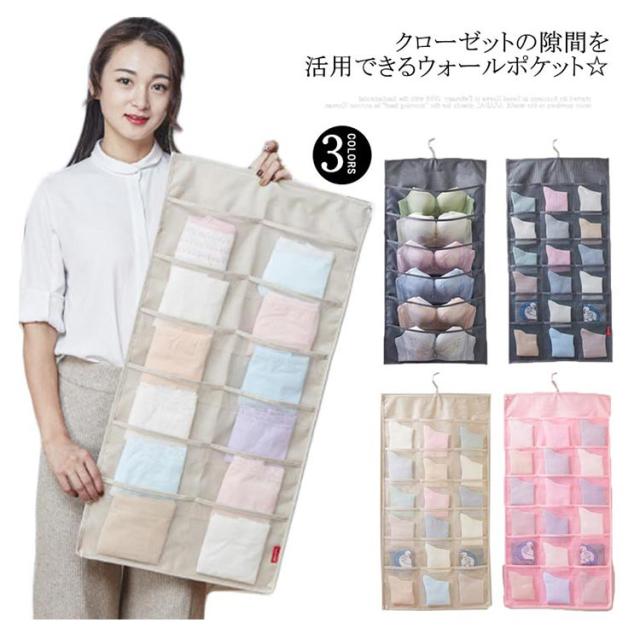 ウォールポケット ハンガー式 下着収納 吊り下げ収納 24ポッケト クリア 両面収納 ブラの型崩れ防止 大容量 透明 メッシュ 洗える 北欧 おしゃれ クローゼット 壁掛け収納 収納ポケット 隙間収納 出し入れ簡単 ブラジャー ショーツ 分類 収納