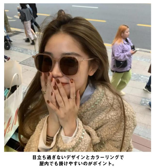 | シンプルなデザインで誰でもフィットするサングラス 目立ち過ぎないデザインとカラーリングで屋内でも掛けやすいのがポイント。 かけ心地はとても良く、しっかり日本人の顔にフィットします。 ビルからの反射光も抑えられるので、街中でのショッピングやウォーキングなどでも、いつもとは違う心地よい視界を提供してくれます。 日常使いから旅行・リゾート・ドライブなど、いろんなシーンでご使用いただけます。 豊かなカラーバリエーション、どんなスタイルにもコーディネートしやすい♪ | |