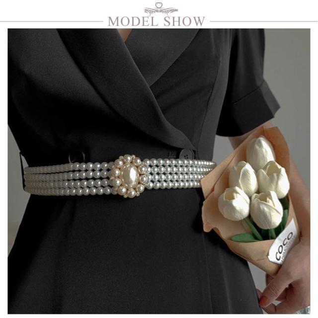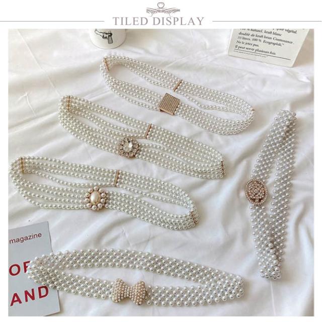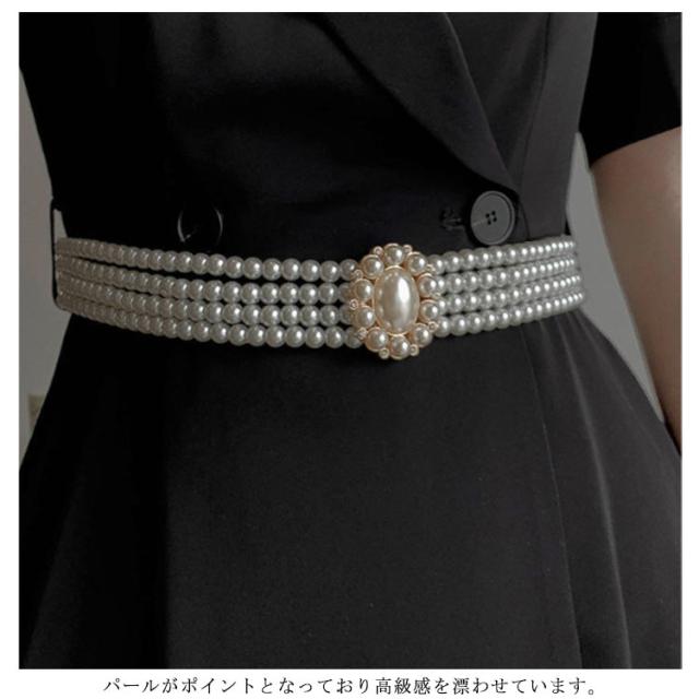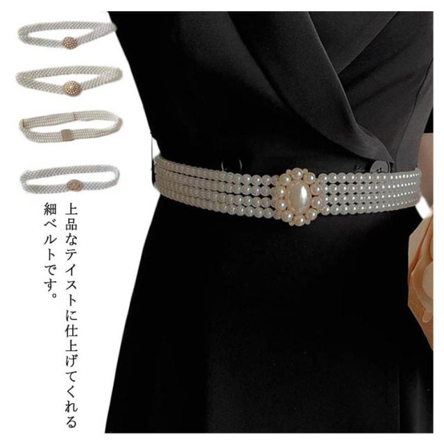 チェーンベルト パール ウエストベルト レディース サッシュベルト 細ベルト 細め バックル ストレッチ ワンピース ゴムベルト パーティー 結婚式 ドレス 飾りベルト 高見え ウエストマーク おしゃれ 送料無料