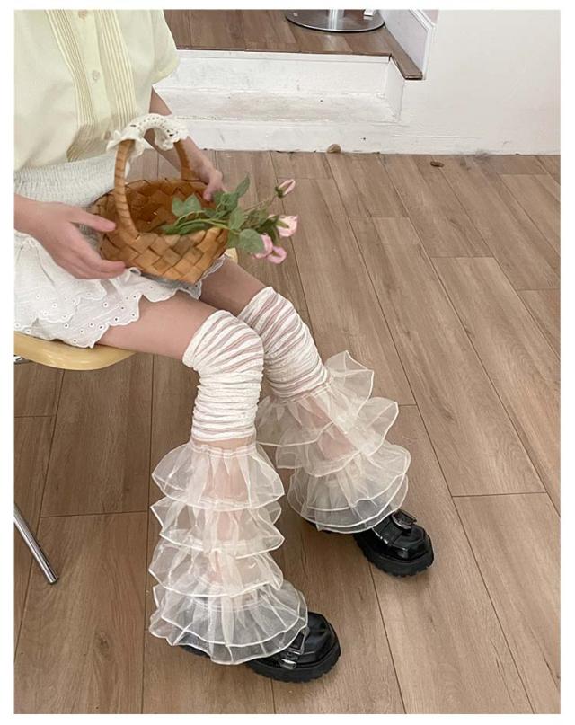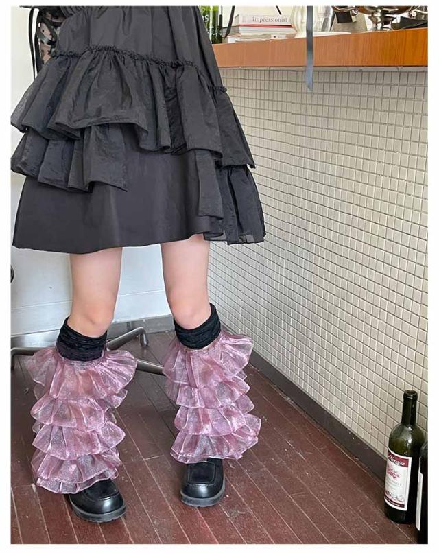 靴下 キッズ レース 靴下 フリル レディース 女性 女の子 白 ホワイト 黒 ブラック ロリータ ソックス 可愛い ガーリー 5層 フリルレース リボン ハイソックス ゆめかわいい チュール フリル ハイソックス 黒 白