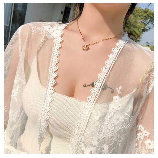 | 女子コーデの強い味方。レースカーディガンです。1着持っているだけで、いつものコーディネートに女性らしさを出してくれる素敵アイテムです。 羽織るだけで繊細で上品に、そしてエレガントに。合わせるインナーやボトムスで印象をガラリと変え、可愛いにもなれるロングカーディガン。 トレンドの透け感が人気でカジュアルに着こなせる前開きのボタンなしタイプ。爽やかで清潔感のある白とシックな黒の2色で使い勝手は抜群です。 春夏秋、長く着られ、特に日差しが強く、暑い夏。気になる紫外線対策や冷房対策にもおすすめです。7分袖が適度な肌見せで暑苦しくなりません。 | |