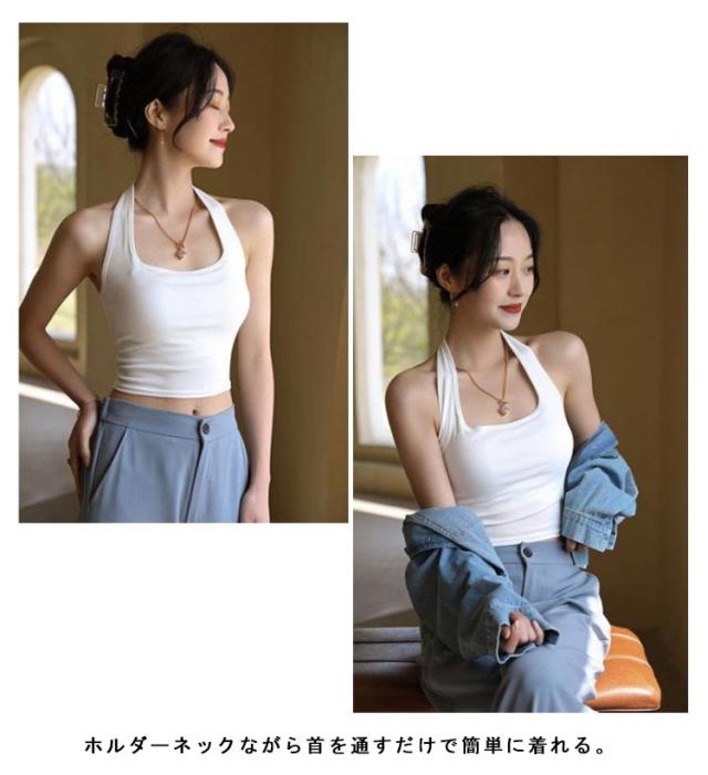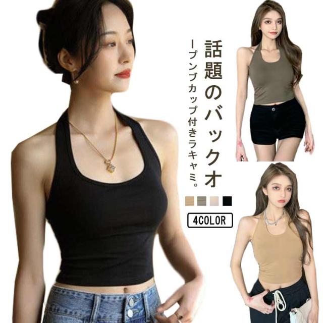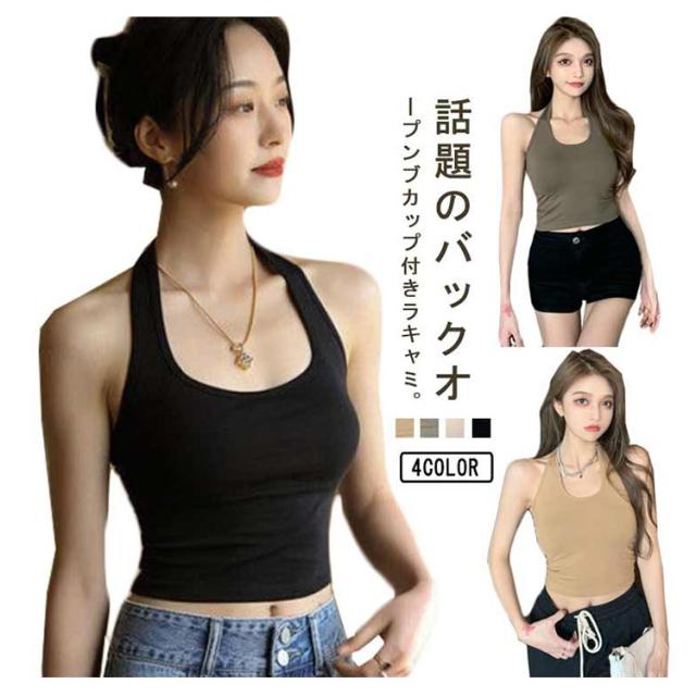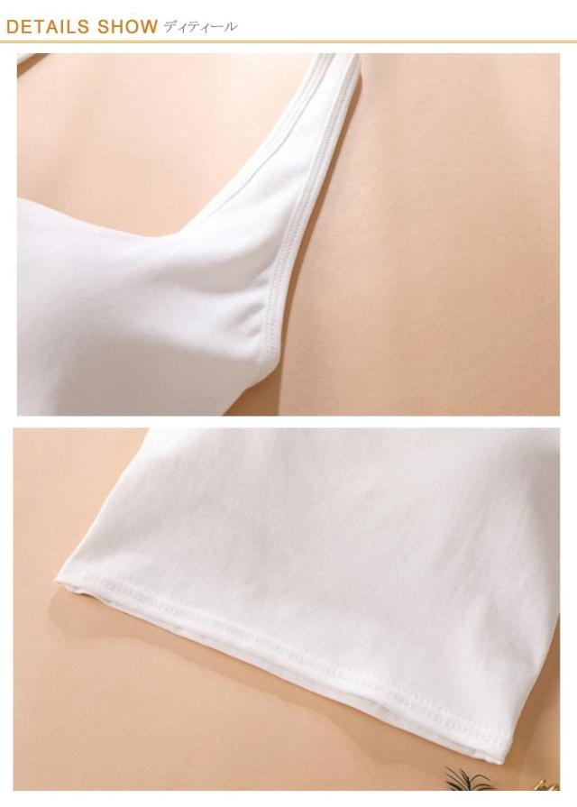 | 話題のバックオープンブカップ付きラキャミ。 ホルダーネックながら首を通すだけで簡単に着れる。 伸縮性に優れた薄手の生地を採用しているため、アクティブな体の動きにもやさしくフィットします。 デイリーはもちろん、おうちでのリラックスタイムにも便利なインナーです。 | |