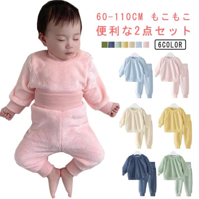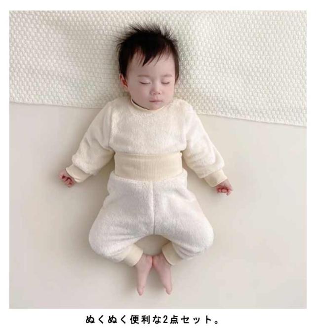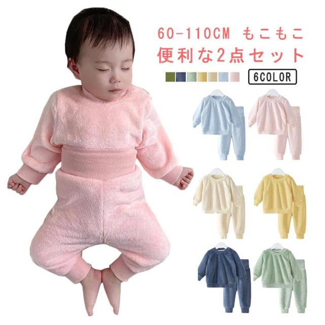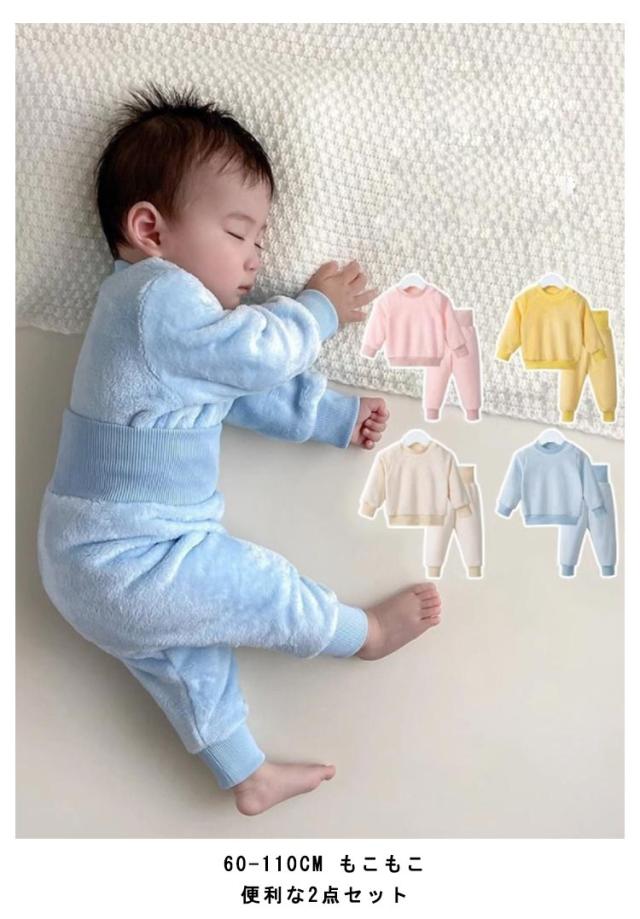 2点セット パジャマ ベビー 冬 長袖 腹巻きパンツ 腹巻き 上下セット 冬用 パジャマ ルームウェア もこもこ 可愛い 冬 ルームウェア もこもこパジャマ 柔らかい 上下セット 動物 裏起毛 かわいい おすすめ 無地 Uネック