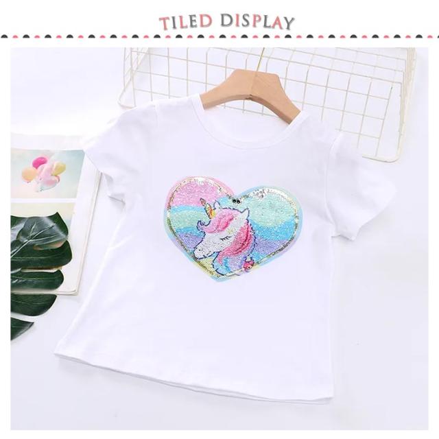 スパンコール 半袖Tシャツ 女の子 送料無料 半袖カットソー トップス キッズ 子供服 女の子 ユニコーン 無地 春 夏 ダンス衣装 韓国子供服 通園 通学 プレゼント 100cm 110cm 120cm 130cm 140cm