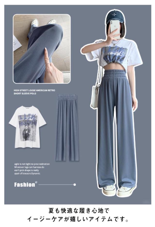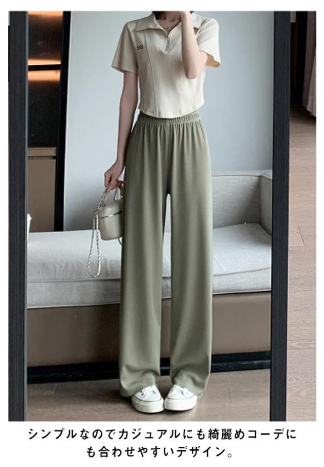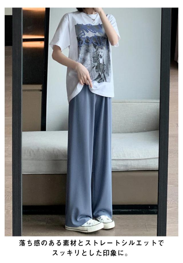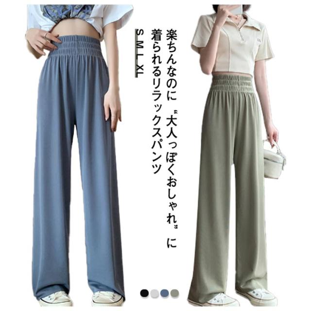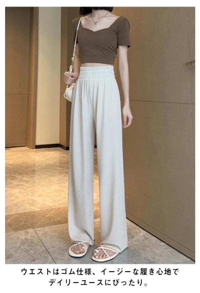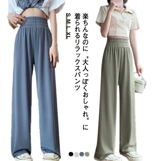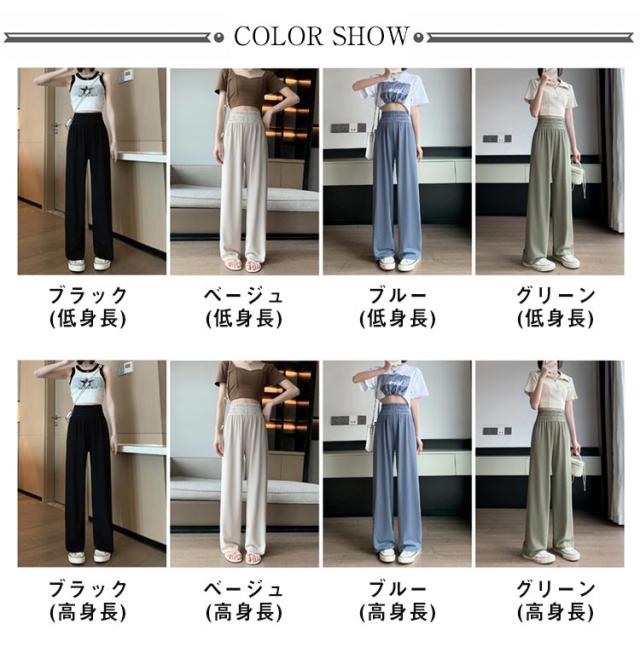 イージーパンツ レディース ワイドパンツ ストレートパンツ リラックスパンツ ボトムス ウェストゴム ロング丈 ハイウェスト ウォッシャブル 春 夏 通学 カジュアル オフィス 低身長/高身長サイズ有 選べる着丈 無地 全4色