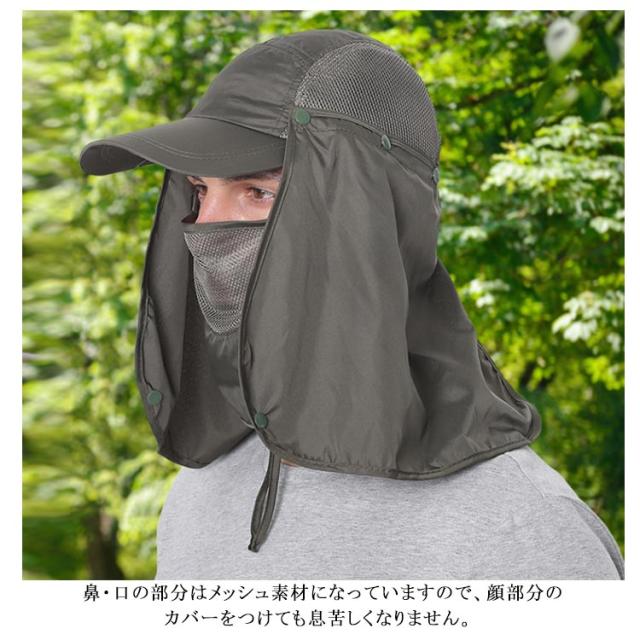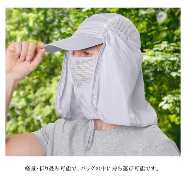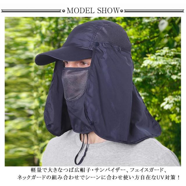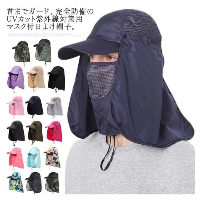 | 首までガード、完全防備のUVカット紫外線対策用 マスク付日よけ帽子。 軽量で大きなつば広帽子・サンバイザー、フェイスガード、ネックガードの組み合わせでシーンに合わせ使い方自在なUV対策! 鼻・口の部分はメッシュ素材になっていますので、顔部分のカバーをつけても息苦しくなりません。 調節用のあご紐ついて、防風効果抜群、自転車に乗る時や風の強い日も飛ばされる心配なく、アウトドア活動にオススメです。顎紐は取り外し可能に、用途に合わせて使い分けできます。 軽量・折り畳み可能で、バッグの中に持ち運び可能です。 登山、ハイキング、ウォーキング、日常レジャー、アウトドアスポーツ、夏場の暑い日差しの中での長時間の屋外作業などのシーンで、日除け・紫外線対策に大活躍間違いなし! | |