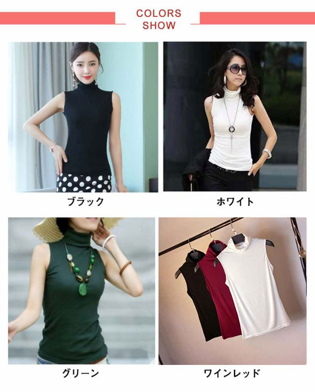 タートルネック ノースリーブ tシャツ レディース ノースリーブtシャツ カットソー コットン 綿 薄手 UVカット インナー ハイネックトップス レイヤード ハイネックtシャツ 無地 春 夏 カジュアル 送料無料