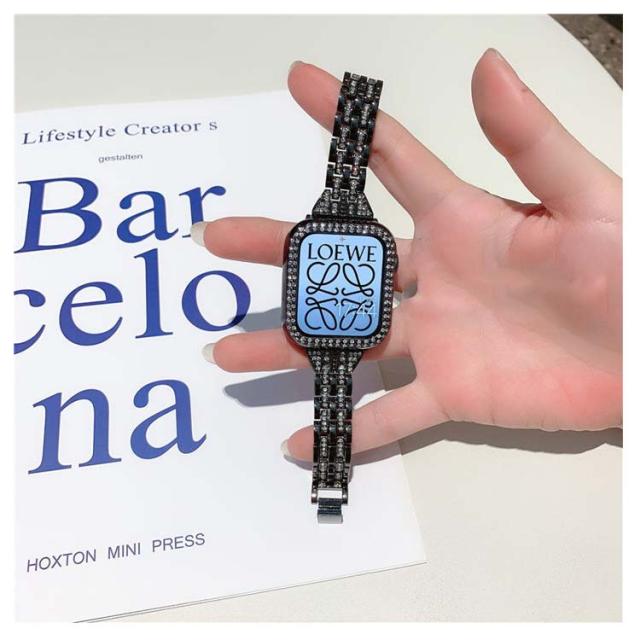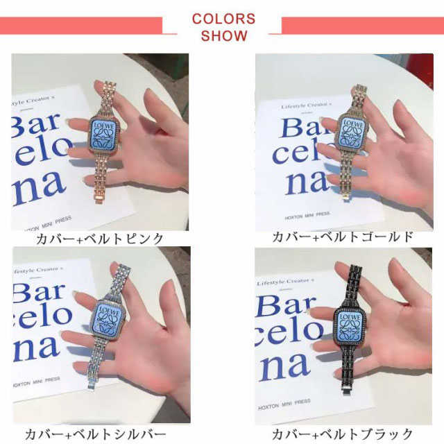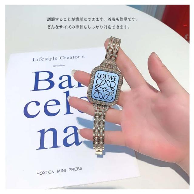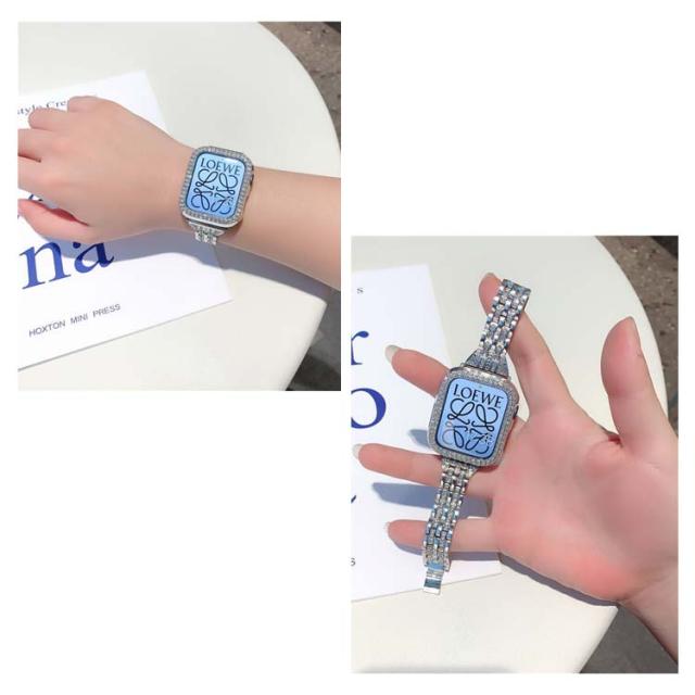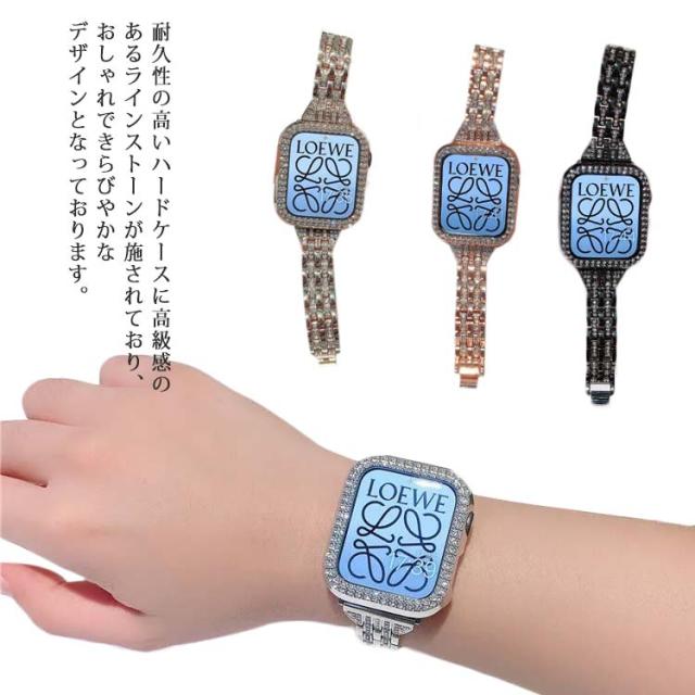 アップルウォッチ 7 カバー+ベルト 2点セット 一体型 キラキラ 高級 アップルウォッチ バンド レディース ステンレス オシャレ 調節可能 キラキラ おしゃれ 可愛い アクセサリー