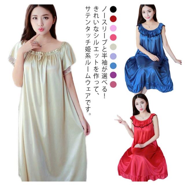 サテンタッチ ロング丈 レディースランジェリー フレア ワンピース 冷感 送料無料 スリップ ナイトウェア パジャマ 部屋着 ゆったり 可愛い かわいい セクシー 姫 妊婦 マタニティー 大きいサイズ L XL 2XL 3XL