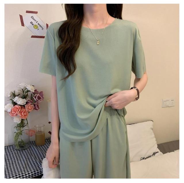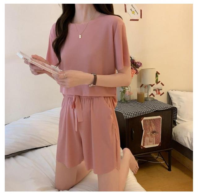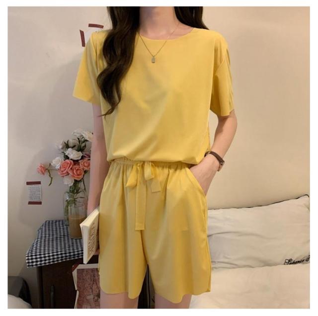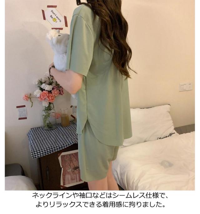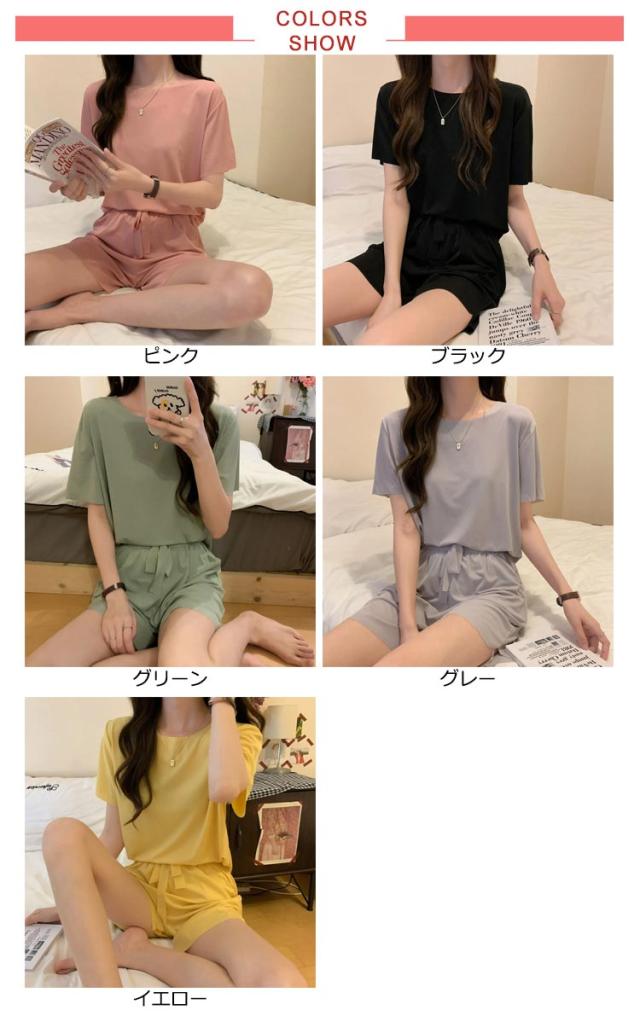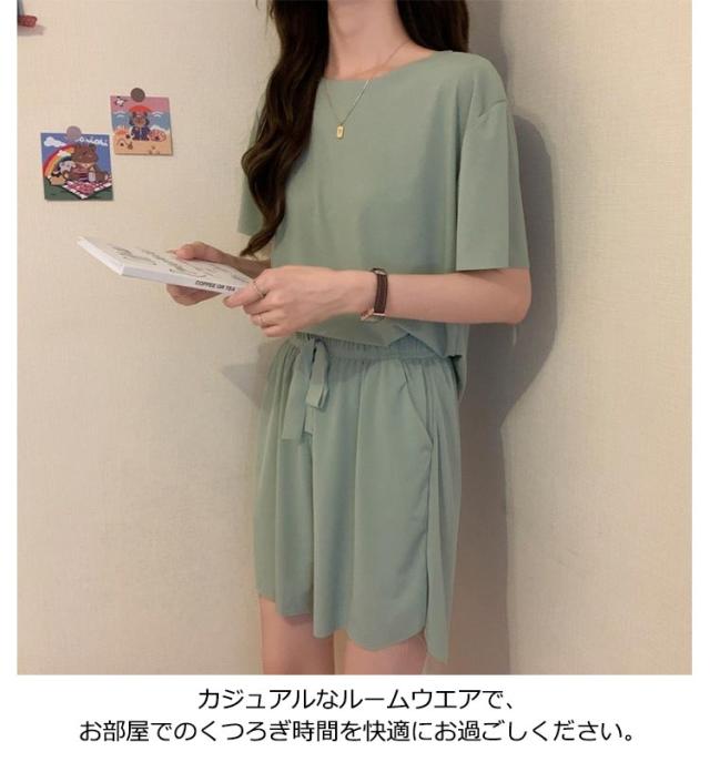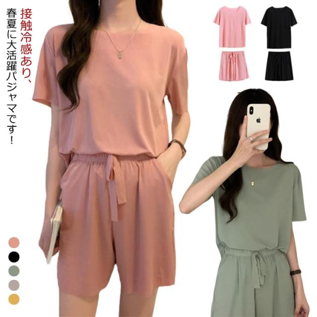 冷感 パジャマ 上下セット レディース ルームウェア 半袖tシャツ+ショートパンツ 夏 部屋着 上下セット アイスシルク 大きいサイズ 涼感 ひんやり ウエストゴム 涼しい 可愛い 通気性 柔らかい フリーサイズ 楽ちん