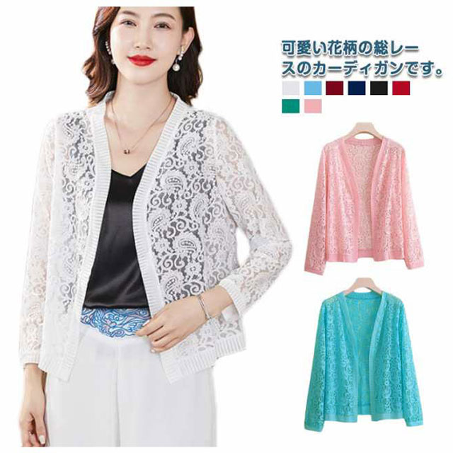 レース カーディガン レディース サマーカーディガン ボレロ シアー サマー カーディガン アウター 春夏 夏用 UVカット 羽織 薄手 透け感 花柄 おしゃれ 紫外線対策 冷房対策 柔らかい 結婚式 二次会 お呼ばれ 夏カーディガン 送料無料