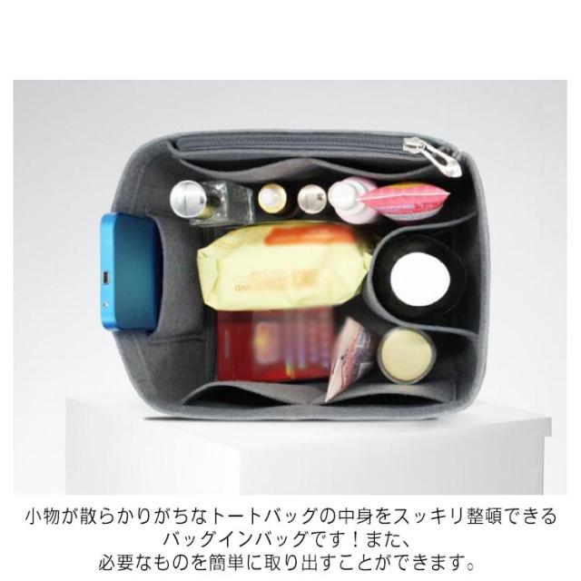 | 高品質フェルトを使用しており、超軽い、形は変形しにくく、バックに入れると、バックがより綺麗、立体感になります。 小物が散らかりがちなトートバッグの中身をスッキリ整頓できるバッグインバッグです!また、必要なものを簡単に取り出すことができます。 バッグを替えても、このインナーごと移していただくことで、小物も忘れることなく持ち運びができます。 しっかりとした作りなのでバックの型崩れも予防できます。 女性のバッグの中身は、何かと物が多く、小物の収納に困ってる方にお勧めのバックインバック。 | |