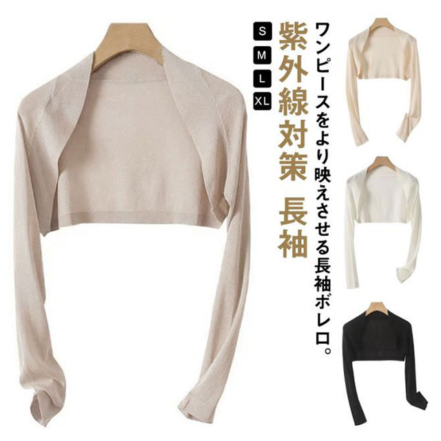 カーディガン 薄手 長袖 ショート丈 レディース 結婚式 お呼ばれ アウター 羽織り 冷房対策 披露宴 夏 発表会 涼しい きれいめ シンプル 上品 ボレロ 二次会 演奏会 キレイめ 紫外線対策 ホワイト ブラック ベージュ ニット 秋 春 送料無料