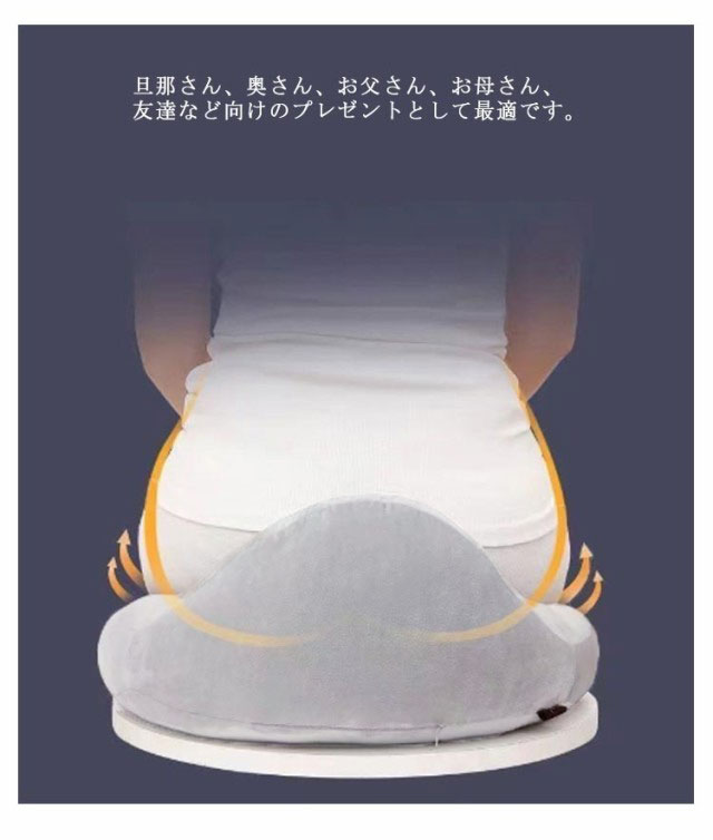 | 穴あき形状で通気性の良い円座は、体圧を分散し、体をやさしくサポート。 自然に背筋が伸び、すっきり綺麗な姿勢に。 骨盤サポート、美尻、産後、手術後、長い時間座って悪い姿勢に悩んでいる人には特にお勧めします。 旦那さん、奥さん、お父さん、お母さん、友達など向けのプレゼントとして最適です。 | |