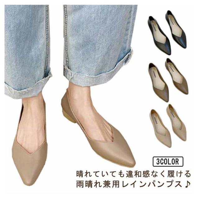 レインパンプス レインシューズ レディース 通勤 おしゃれ レイン パンプス 痛くない 履きやすい レインパンプス 雨靴 雨の日 防水 パンプス ポインテッドトゥ ぺたんこ アウトドア 晴雨兼用 防水 梅雨 梅雨対策 歩きやすい