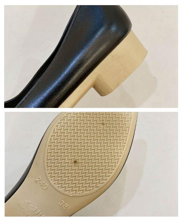 | 晴れていても違和感なく履ける雨晴れ兼用レインパンプス♪ オシャレなデザイン、雨をはじく撥水仕様のpvc素材で急な雨でも水や汚れをしっかりはじく頼もしい防水仕様。 軽くて柔らかい生地、まるで履いていない快適な履き心地◎ サイド、バックスタイルは正にお洒落大人パンプスに相応しい完成度! 1足持っていると大変重宝し毎日のお仕事のパートナーとしても大活躍間違いなし! | |