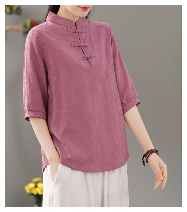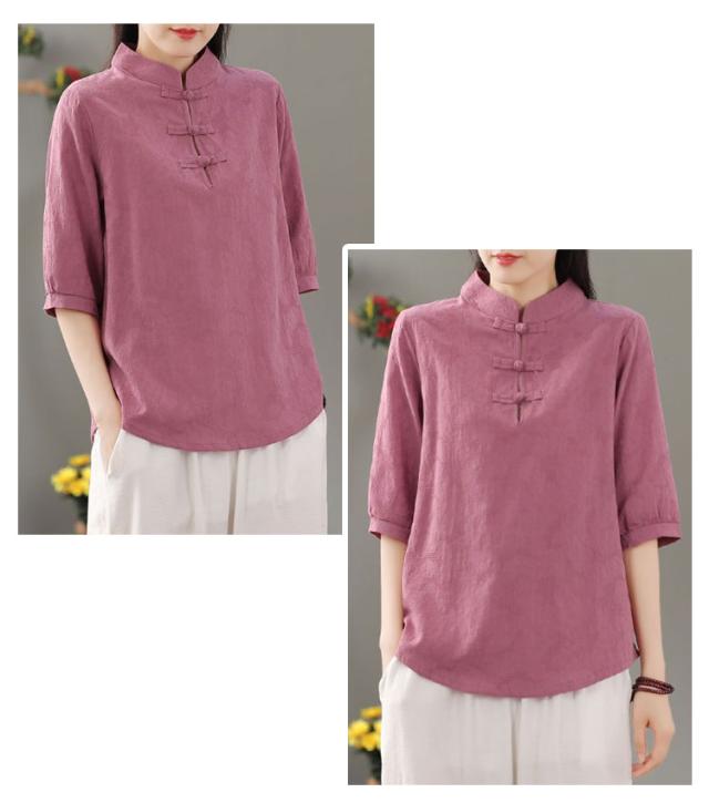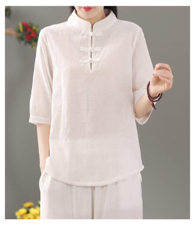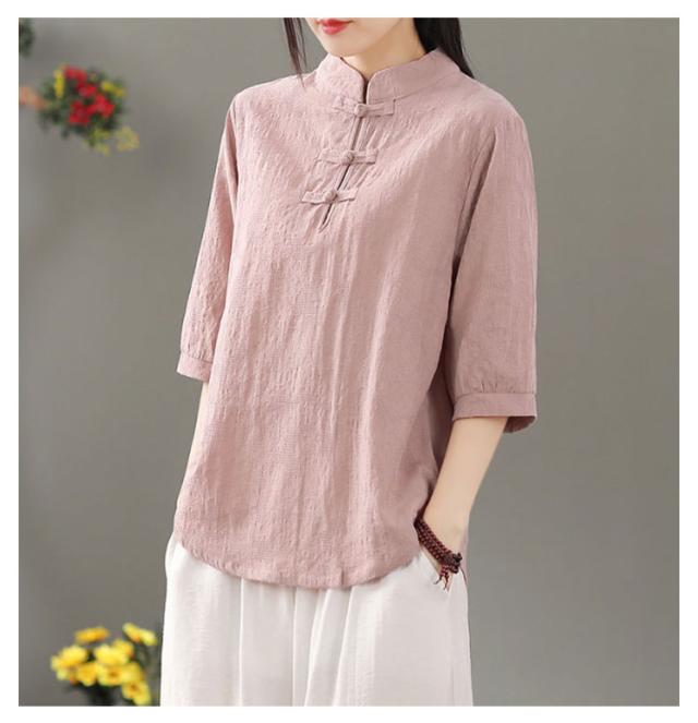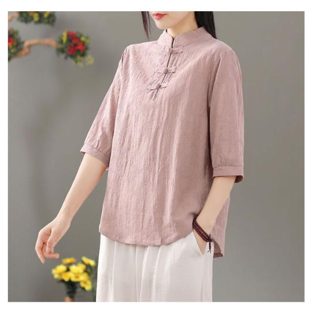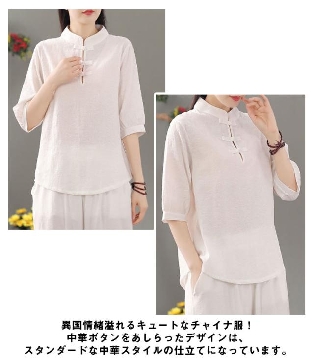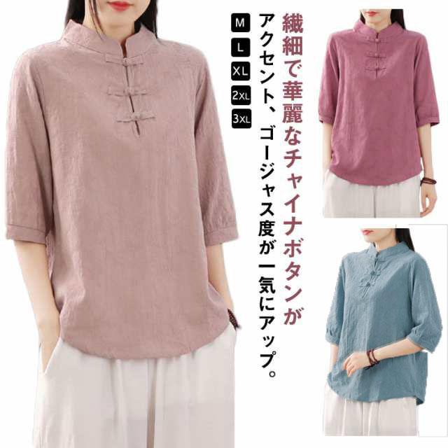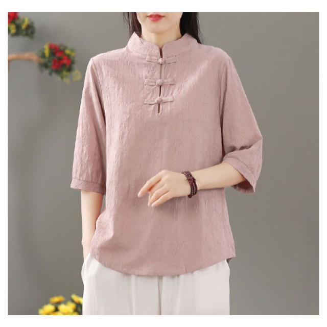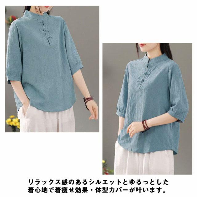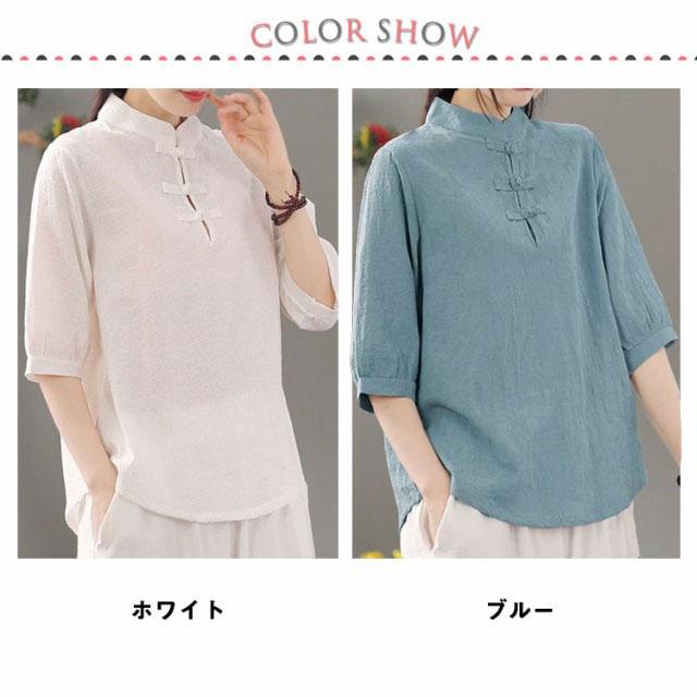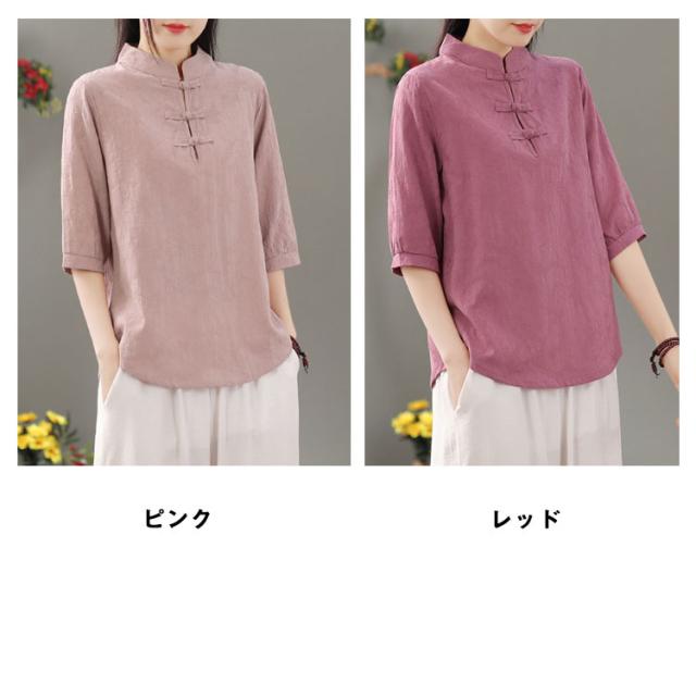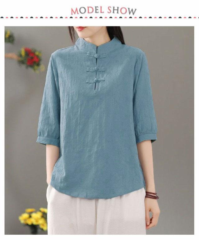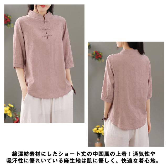 リネン混 リネン 麻生地 送料無料 リネンブラウス 半袖ブラウス レディース チャイナボタン 麻 ブラウス チャイナカラー 綿 無地 チャイナ風 中華 中国風 Tシャツ 綿 羽織 体型カバー