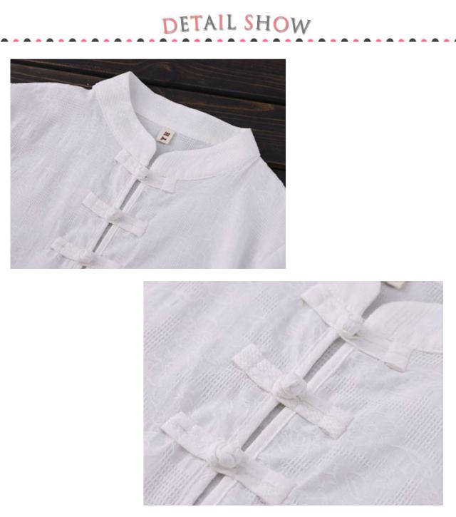 | 繊細で華麗なチャイナボタンがアクセント、ゴージャス度が一気にアップ。 リラックス感のあるシルエットとゆるっとした着心地で着痩せ効果・体型カバーが叶います。 綿混紡素材にしたショート丈の中国風の上着!通気性や吸汗性に優れいている麻生地は肌に優しく、快適な着心地。 異国情緒溢れるキュートなチャイナ服!中華ボタンをあしらったデザインは、スタンダードな中華スタイルの仕立てになっています。 | |