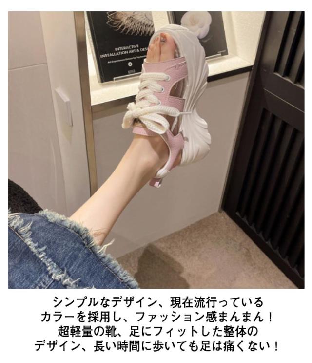 スポーツサンダル スニーカー スポサン サンダル 厚底 通気性 ゴム紐 靴 歩きやすい 軽量 オープントゥ レディース 滑りにくい PUレザー 通学 通勤 5cmヒール おすすめ おしゃれ ピンク ホワイト 紐付き ゴムソール 2023春夏新作