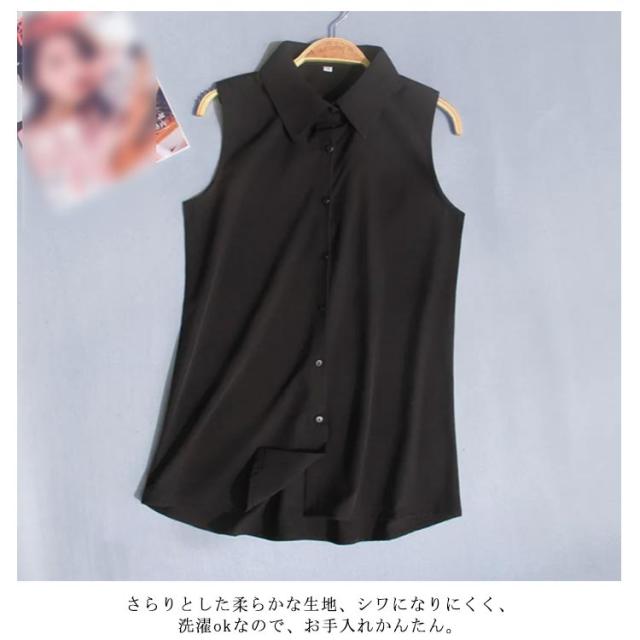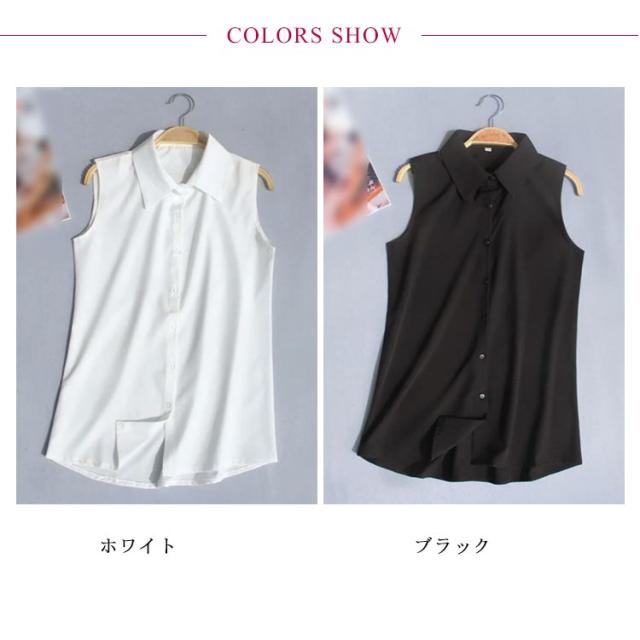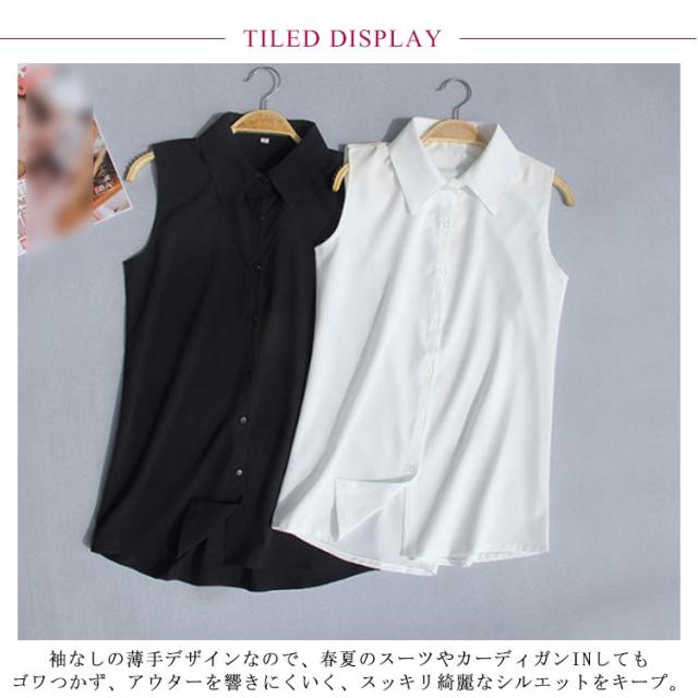 送料無料 ノースリーブ ブラウス 袖なし レディース 襟付き シャツブラウス スーツ インナー タンクトップ Yシャツ シフォンシャツ 白 黒 夏 OL 通勤 レイヤード 大きいサイズ 無地 薄手