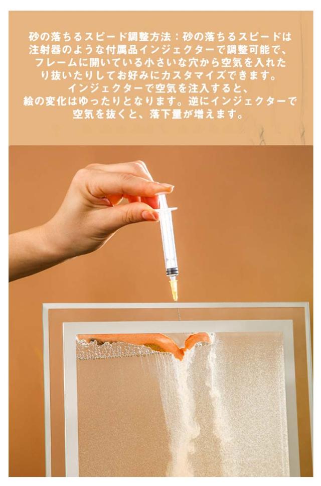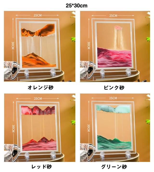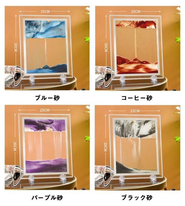| お部屋を上質な空間に仕上げるサンドピクチャー。【ガラス製】【25*30cm】【全8色】 繊細な砂がさらさらと流れ落ちる様子に子供から大人まで魅了されるハイセンスなインテリア 上下さかさまにすることで毎回異なる表情をみせてくれます お世話になった方や大切な方へのプレゼント、贈り物 結婚祝い、出産祝いなどにもオススメ クリアの角型フレーム 洗練されたデザイン無駄のないデザインは飽きることはありません | |