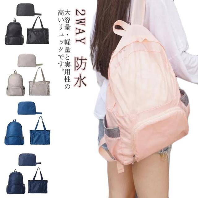 リュック 折りたたみ 軽量 2WAY 大容量 エコバッグ コンパクト レディース メンズ バックパック アウトドアバッグ バッグ 防水 リュックサック 旅行 収納 登山 アウトドア 無地 シンプル 通勤 通学 マザーズバッグ ピンク ブラック ダークブルー グレー ブルー 送料無料