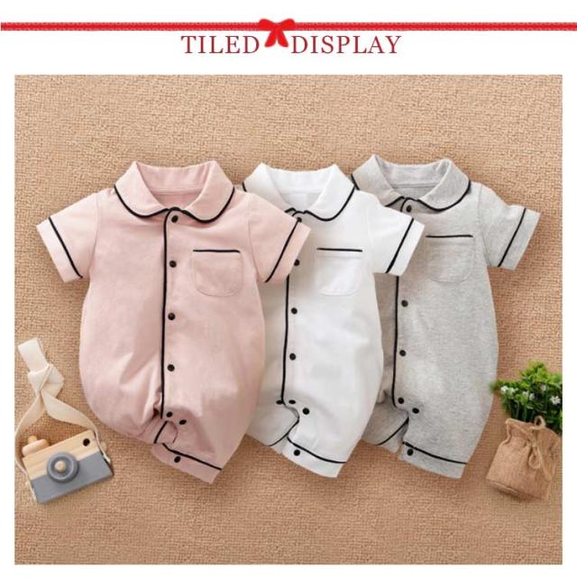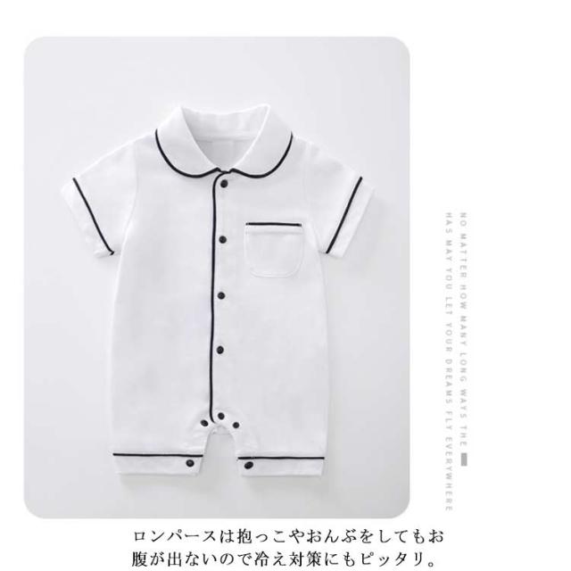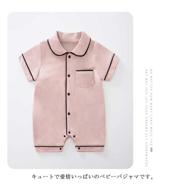 パジャマ ベビー ロンパース 半袖 前開き スナップボタン ルームウェア 綿 薄手 赤ちゃん 新生児服 肌着 男の子 夏 出産準備 出産祝い 全3色